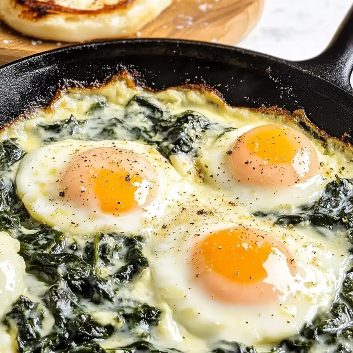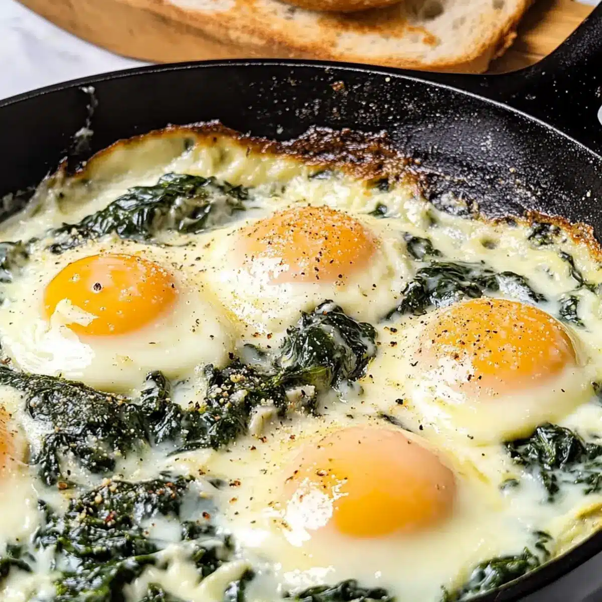 Begin by preheating your oven to 375°F (190°C). This temperature is crucial for ensuring that your Baked Eggs Florentine cooks evenly and the egg whites set perfectly while keeping the yolks gloriously runny. While the oven warms up, you can prepare your skillet, making the next steps seamless.