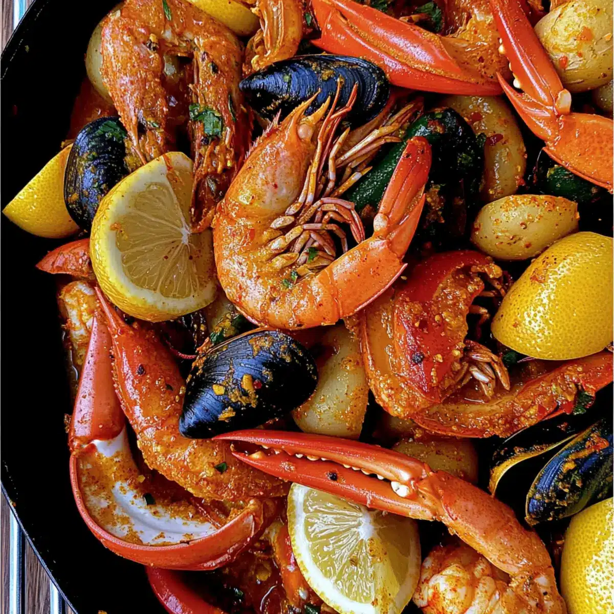 Standing near the steamy pot, I couldn’t help but be enveloped by the intoxicating aromas of my Cajun Seafood Boil. This lively dish, a flavorful fusion of crabs, shrimp, mussels, and squid, transforms any gathering into a deliciously memorable experience. With my homemade Cajun seasoning, you can perfectly customize the spice level to suit your tastes, making it an ideal choice for everyone—from spice enthusiasts to those seeking milder flavors. Beyond the tantalizing taste, this seafood extravaganza comes together quickly, allowing you to focus on what truly matters: the laughter and connection with friends and family. Dive in, and let me guide you through creating a dish that will surely spice up your next summer cookout—are you ready to indulge in this culinary adventure?
