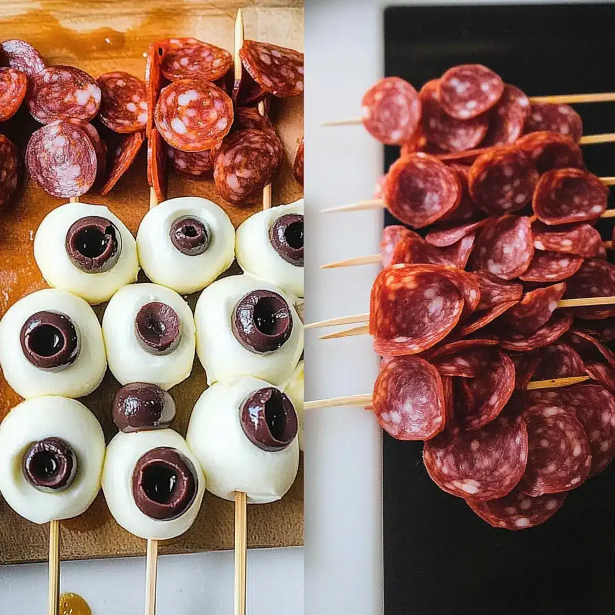 Creepy Skewered Salami Eyeballs for a Spooky Snack Attack