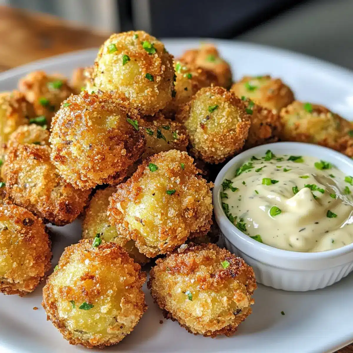 Crispy Deep Fried Olives with Creamy Garlic Aioli