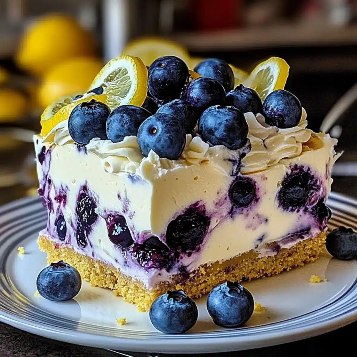 No-Bake Lemon Dazzling Blueberry Cream Cake for Summer Bliss