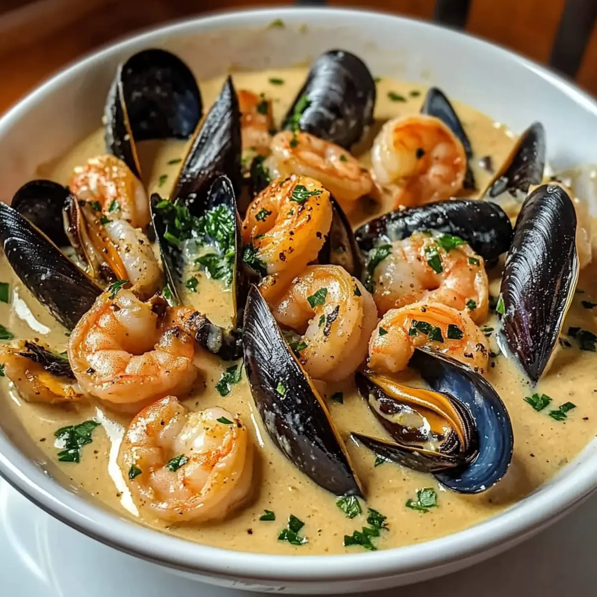 Indulge in Shrimp and Mussels in Creamy Garlic Sauce Tonight