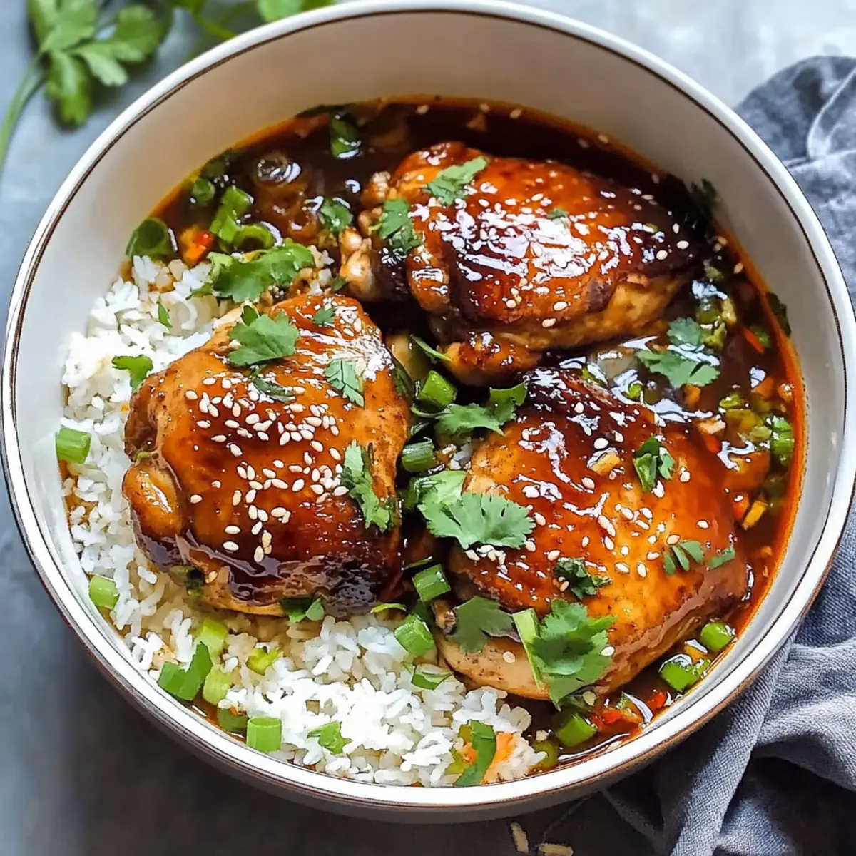 Caramelized Soy Chicken in Garlic Ginger Broth with Rice Bliss