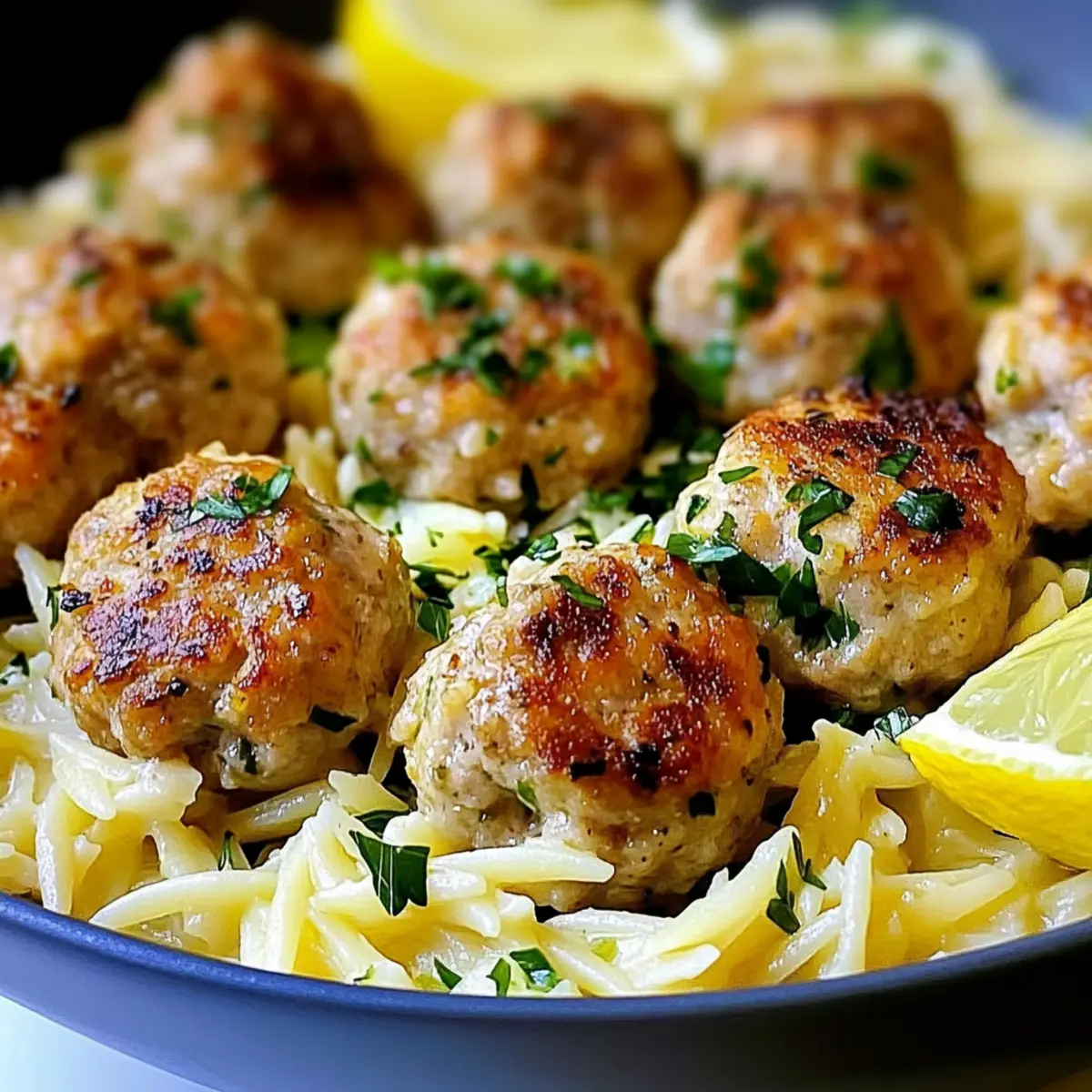 Greek Chicken Meatballs with Lush Lemon Orzo Delight