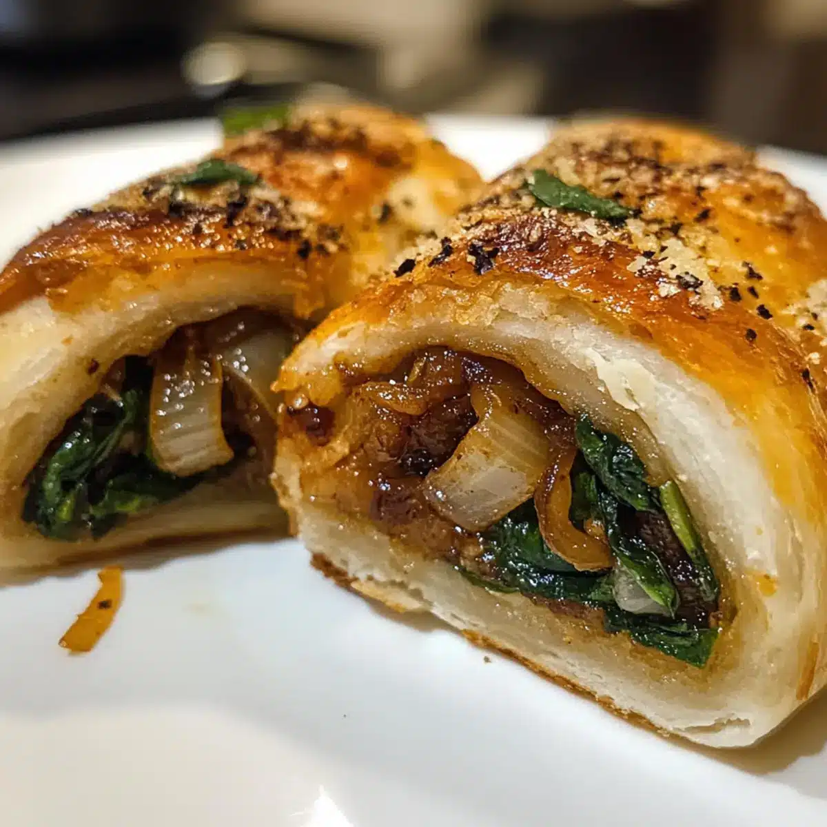 Mouthwatering Vegan Caramelized Onion & Spinach Pizza Rolls