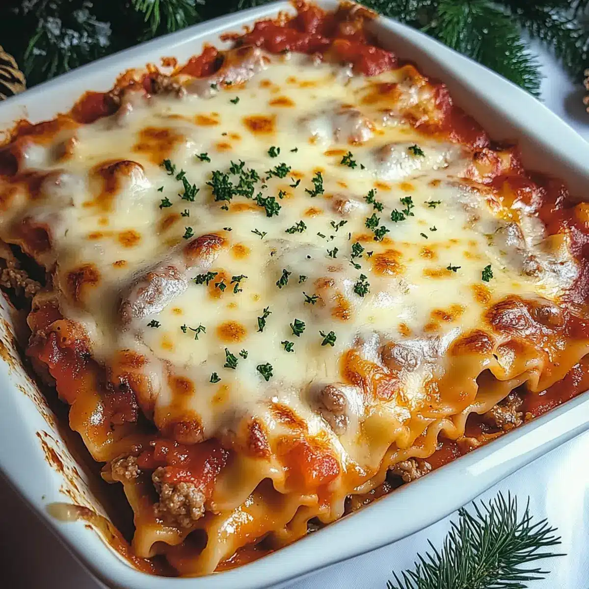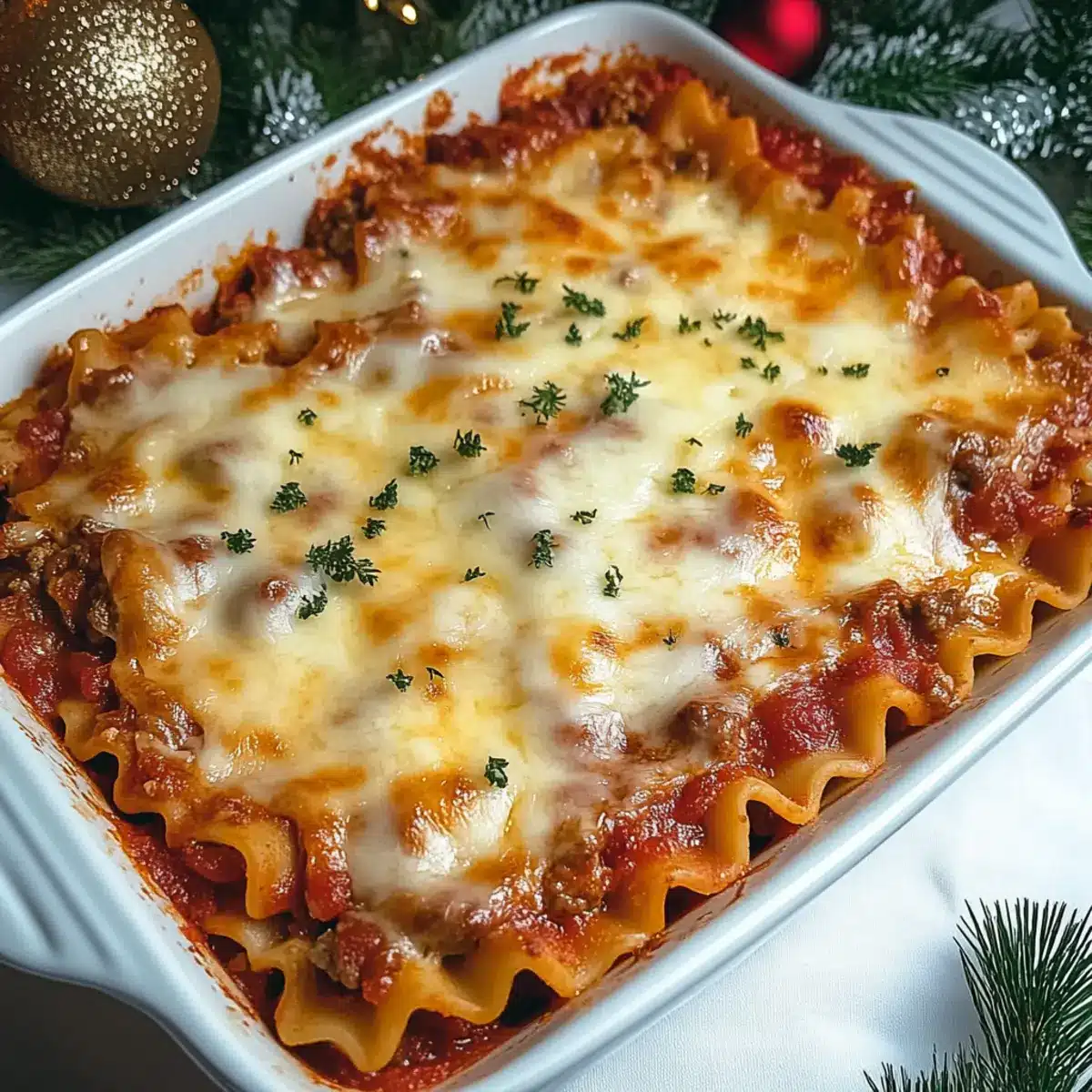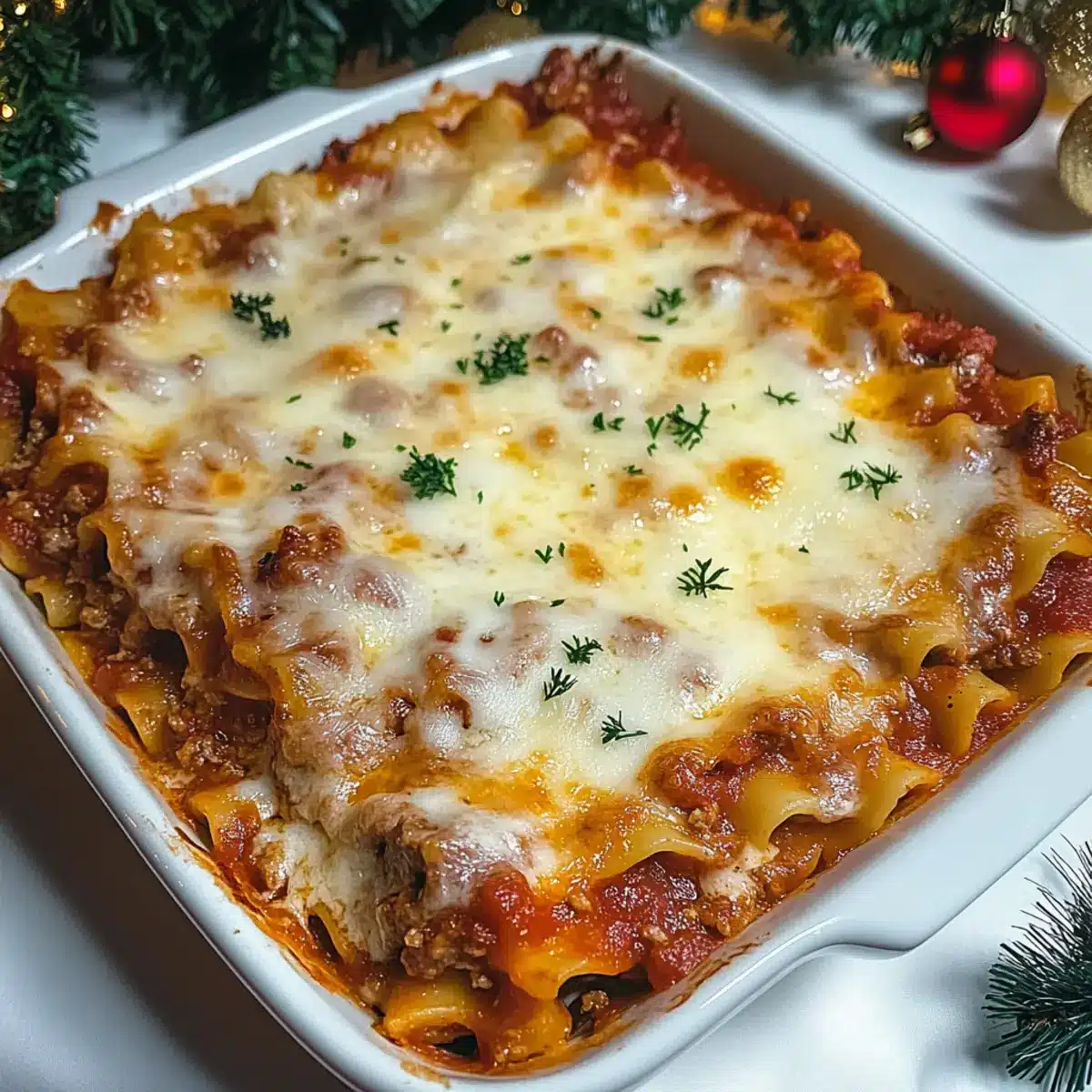 Irresistible warmth: The Cheesy Christmas Lasagna wraps you in a cozy embrace with each delicious layer.