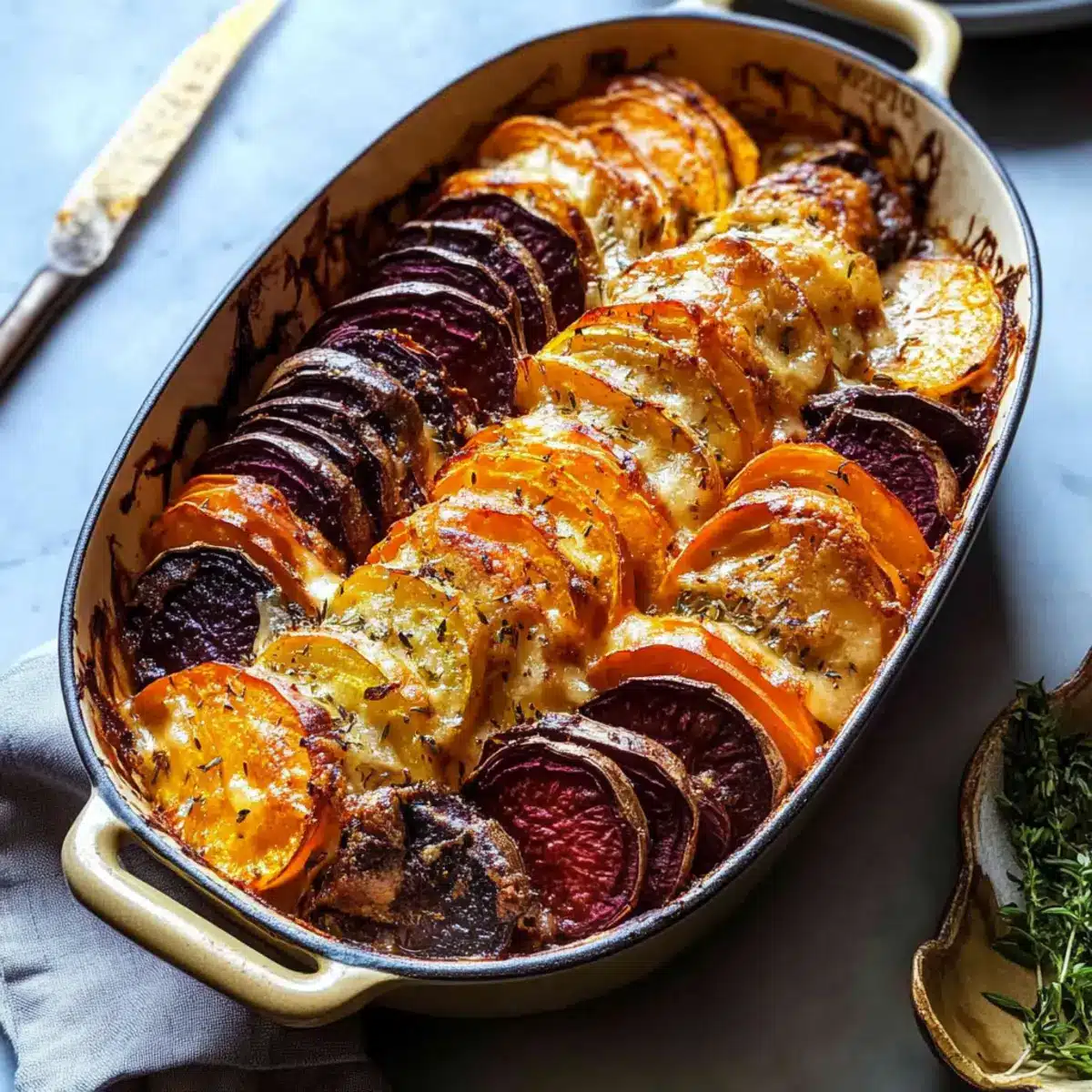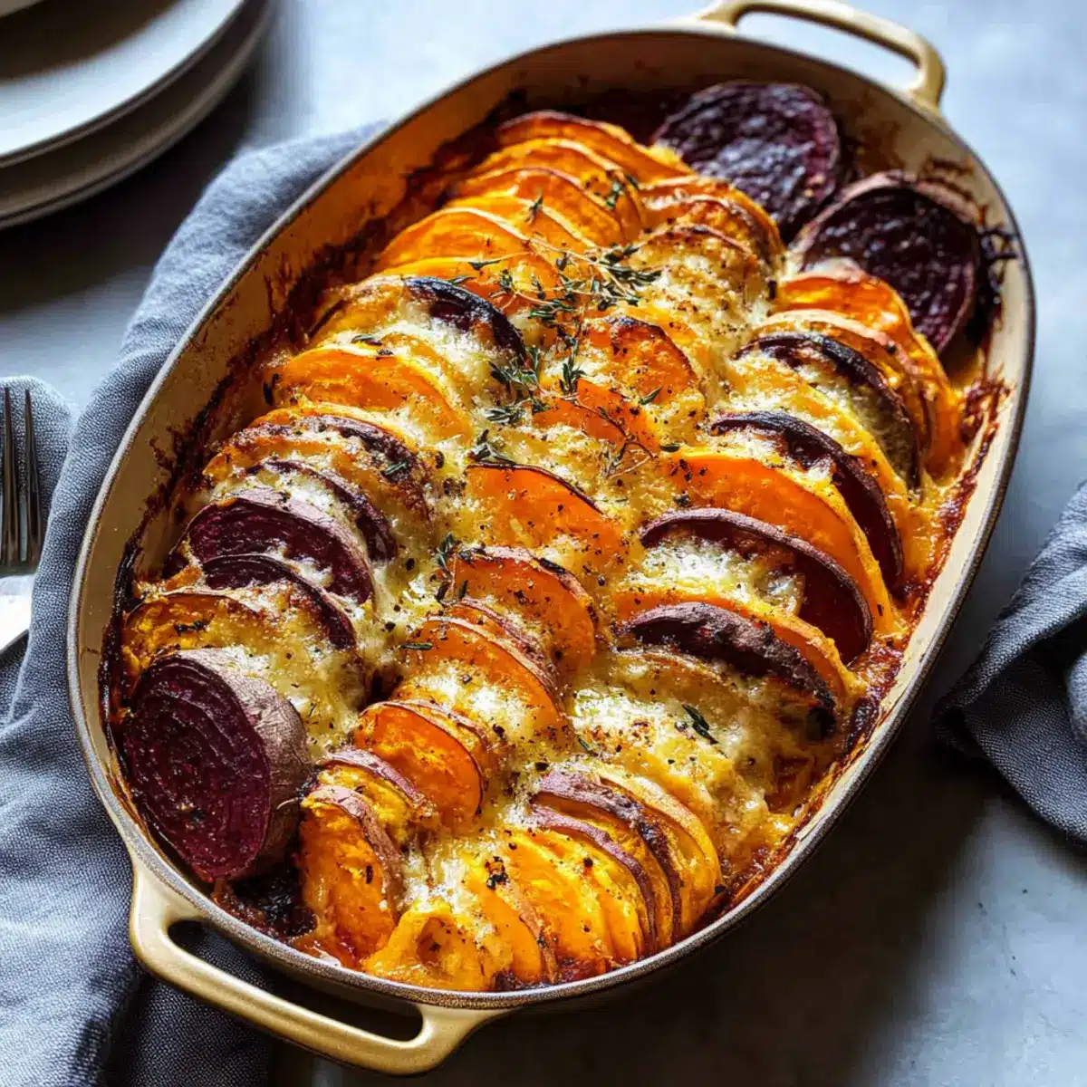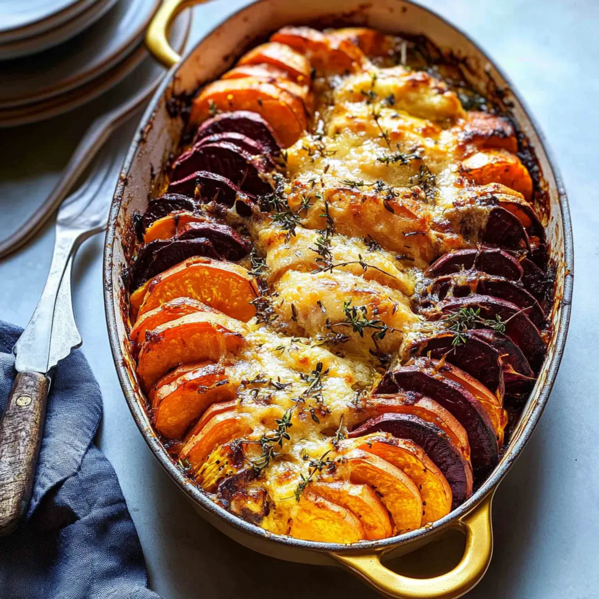 Visual Appeal: The vibrant layers of sweet potatoes, beets, and parsnips create a dish that’s as stunning as it is delicious.