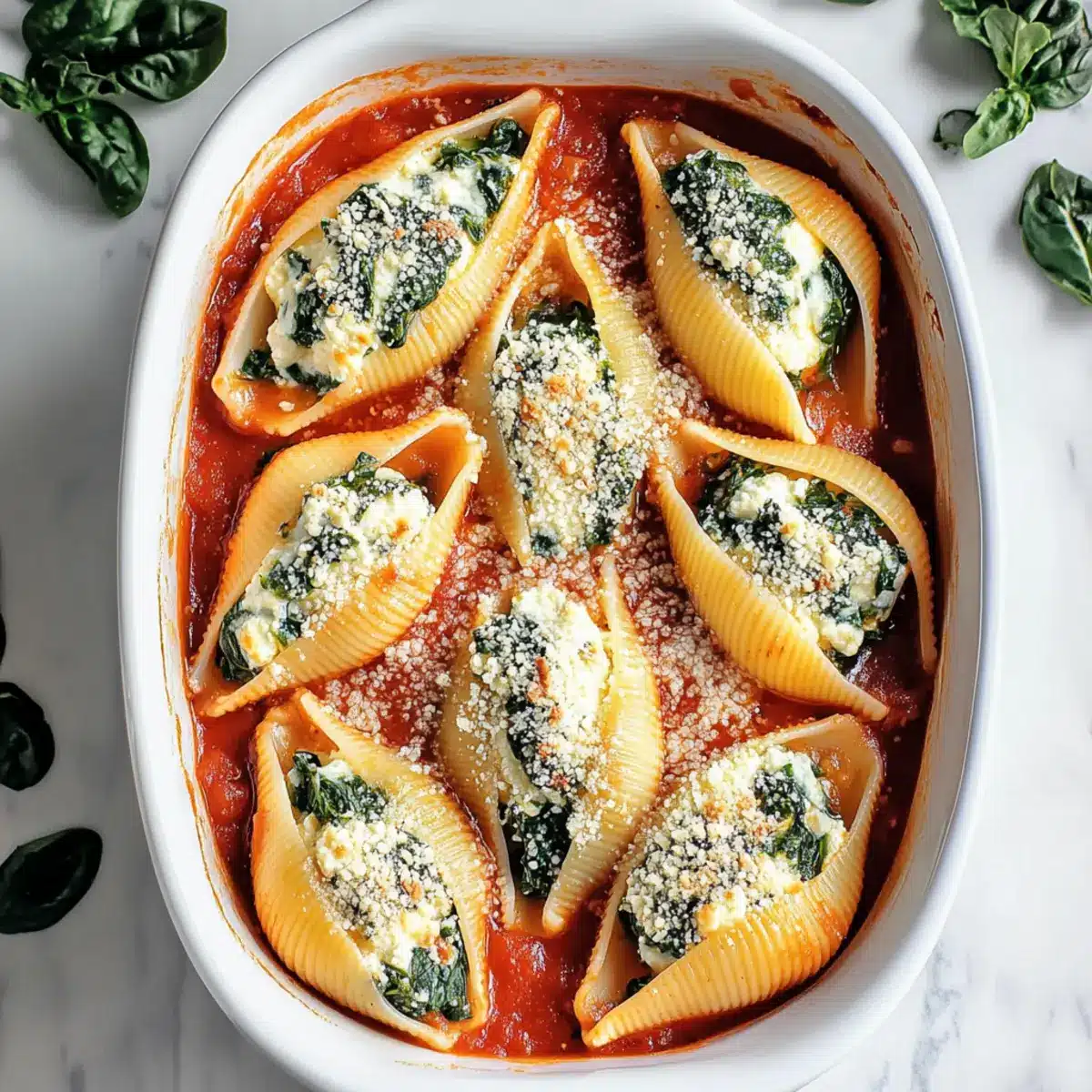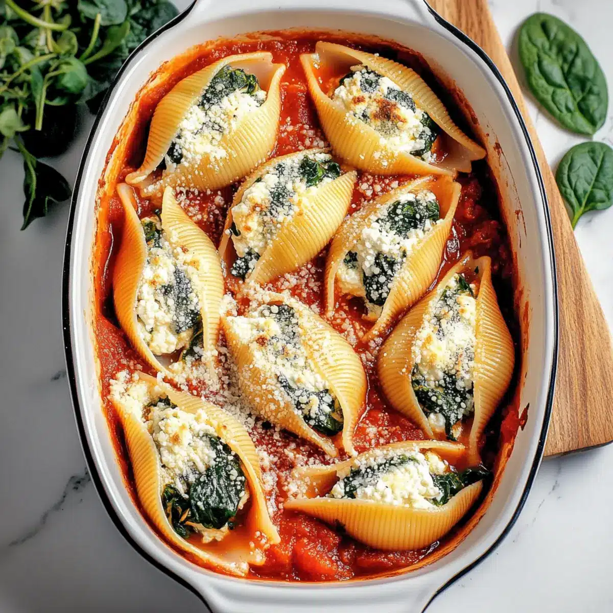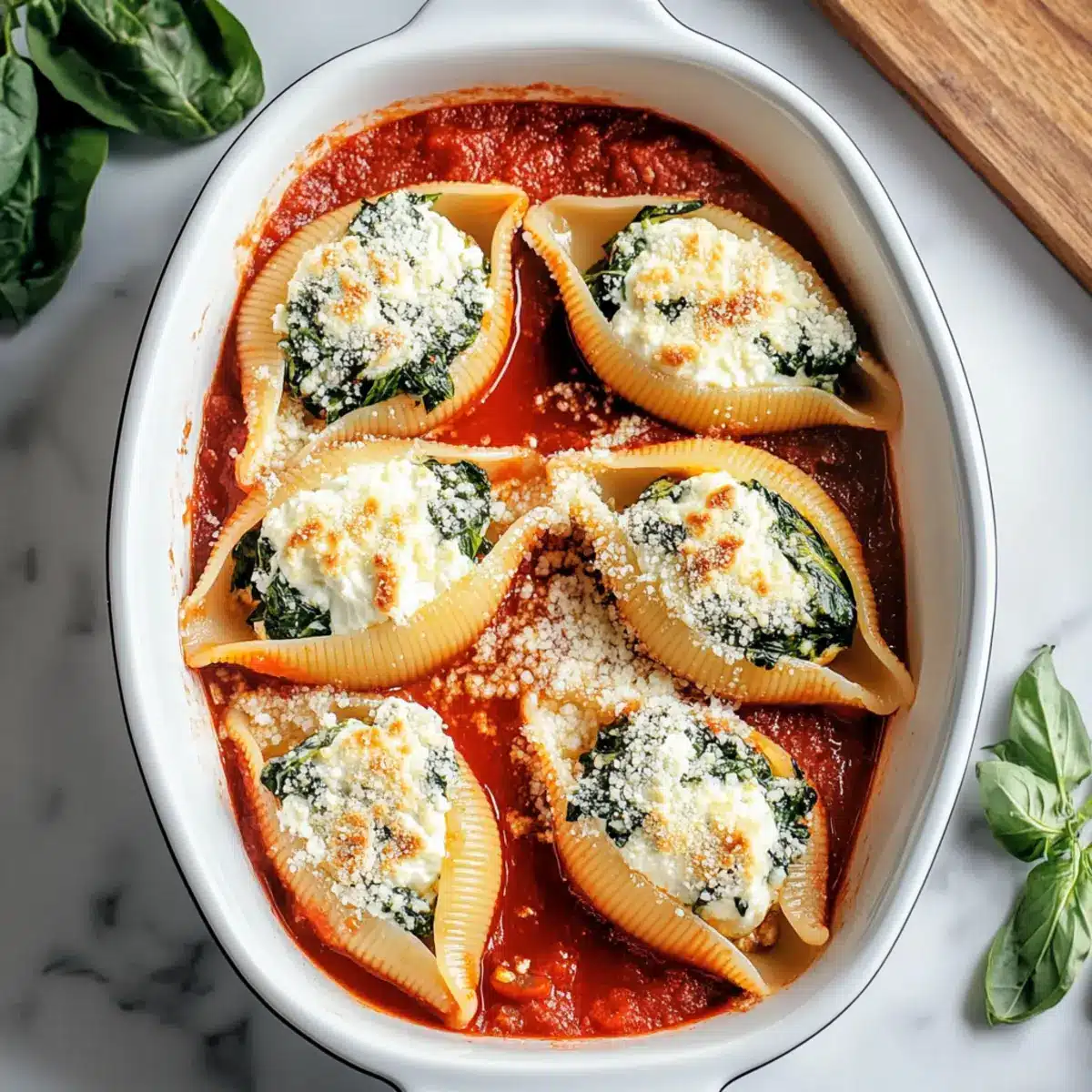 Absolutely! To freeze, wrap the unbaked stuffed shells tightly with plastic wrap and place them in a freezer-safe container or zip-top bag. They’ll last up to 3 months. When ready to bake, thaw them overnight in the fridge and then bake at 350°F (175°C) for about 25 minutes, covered with foil.