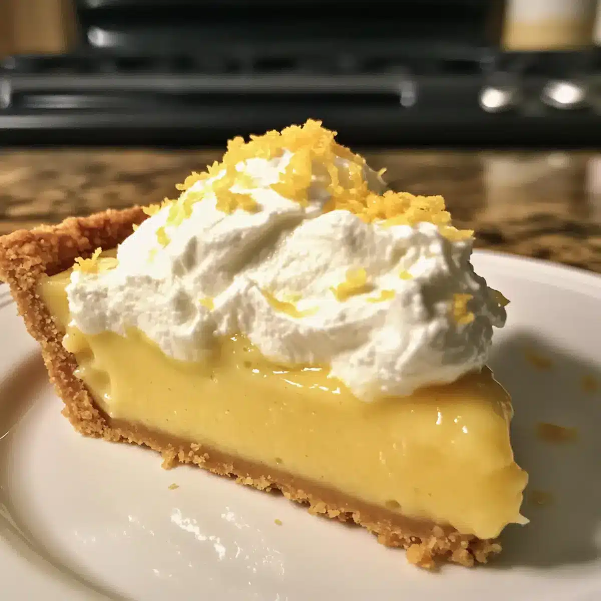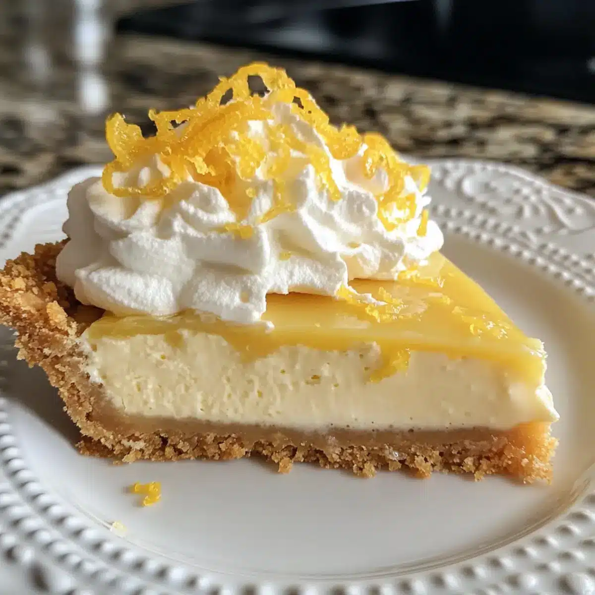 - Top the chilled pie with whipped cream, lemon slices, and lemon zest just before serving.
