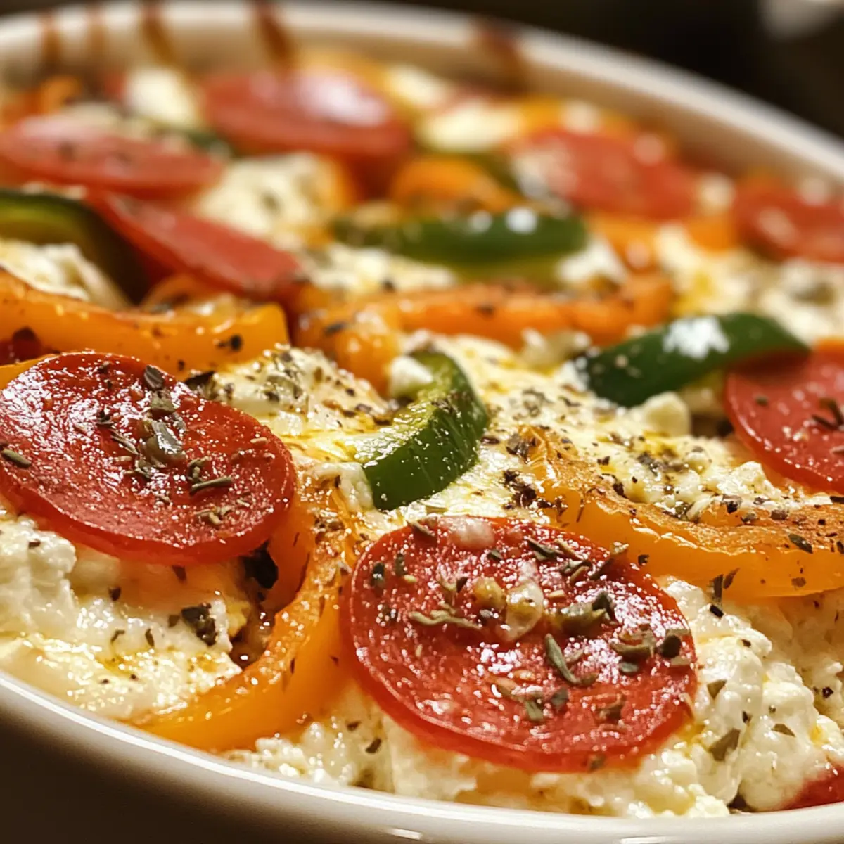 These Cottage Cheese Pizza Bowl preparations are ideal for busy home cooks looking to save time! You can mix the cottage cheese, marinara sauce, diced bell pepper, and pepperoni (if using) up to 3 days in advance. Store the mixture in an airtight container in the refrigerator, ensuring it remains fresh and flavorful. To maintain the creamy texture and prevent excess moisture, consider draining any liquid from the cottage cheese before mixing. When you’re ready to serve, simply transfer the mixture to an oven-safe bowl, top with mozzarella, and bake at 400°F for about 8-10 minutes, finishing with a quick broil for that perfectly melted, golden crust. Enjoy a homemade pizza experience that’s just as delicious while minimizing evening stress!