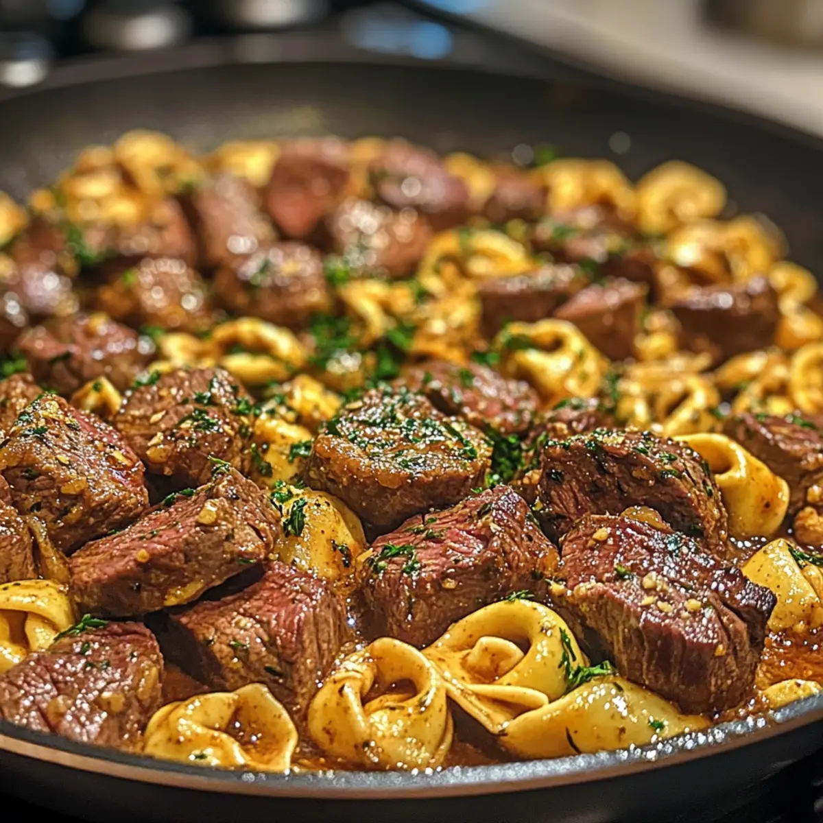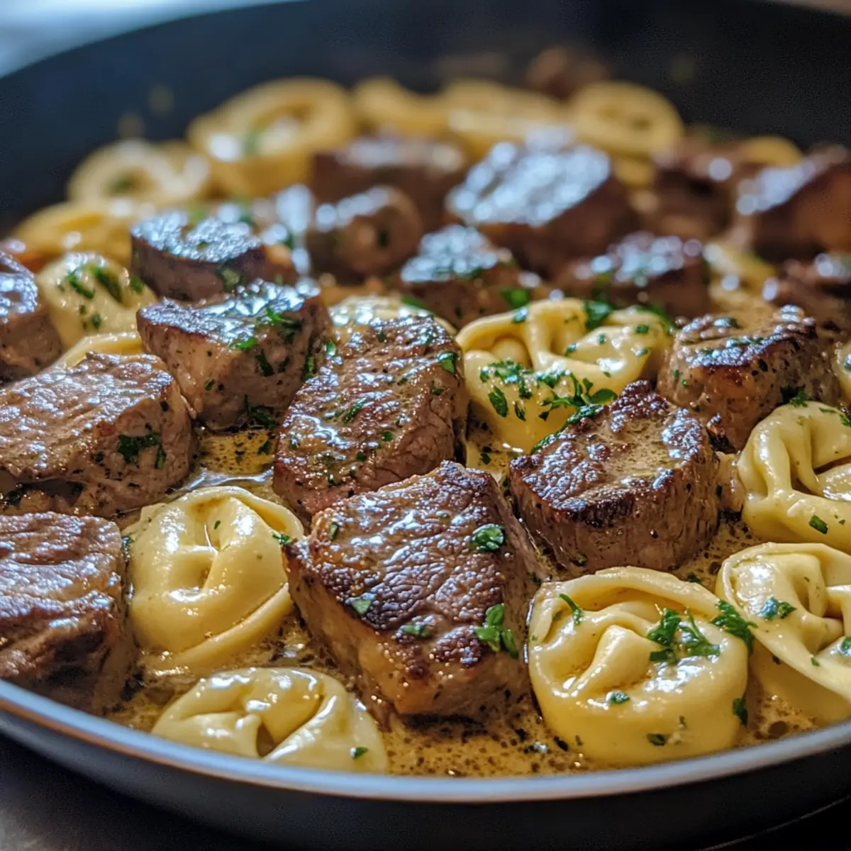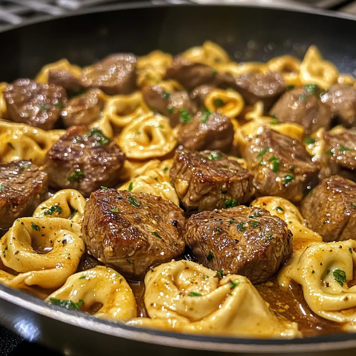 - Combine Everything: Add tortellini and steak bites to the skillet with the sauce, tossing gently. Gradually add reserved pasta water to achieve a silky consistency. Mix in grated Parmesan until melted.