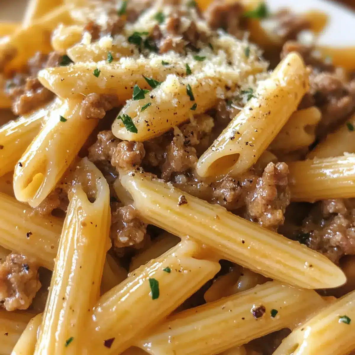 Perfectly Browned Beef: Ensure the ground beef is browned well for deeper flavor and richness in your creamy beef pasta. Don’t rush this step!