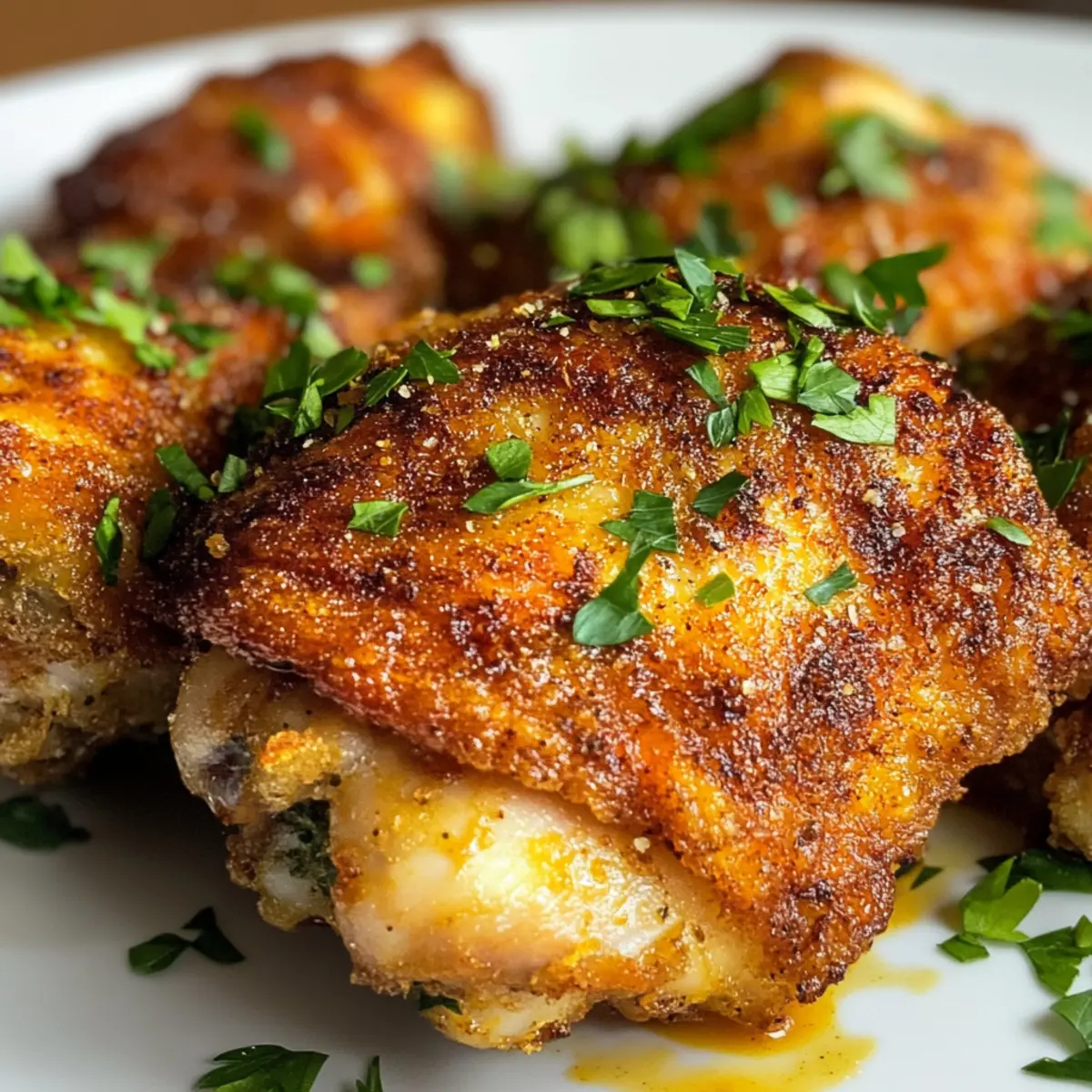 • Bone-in, skin-on chicken thighs – Essential for moisture and flavor; keep the skin to ensure ultimate crispiness.