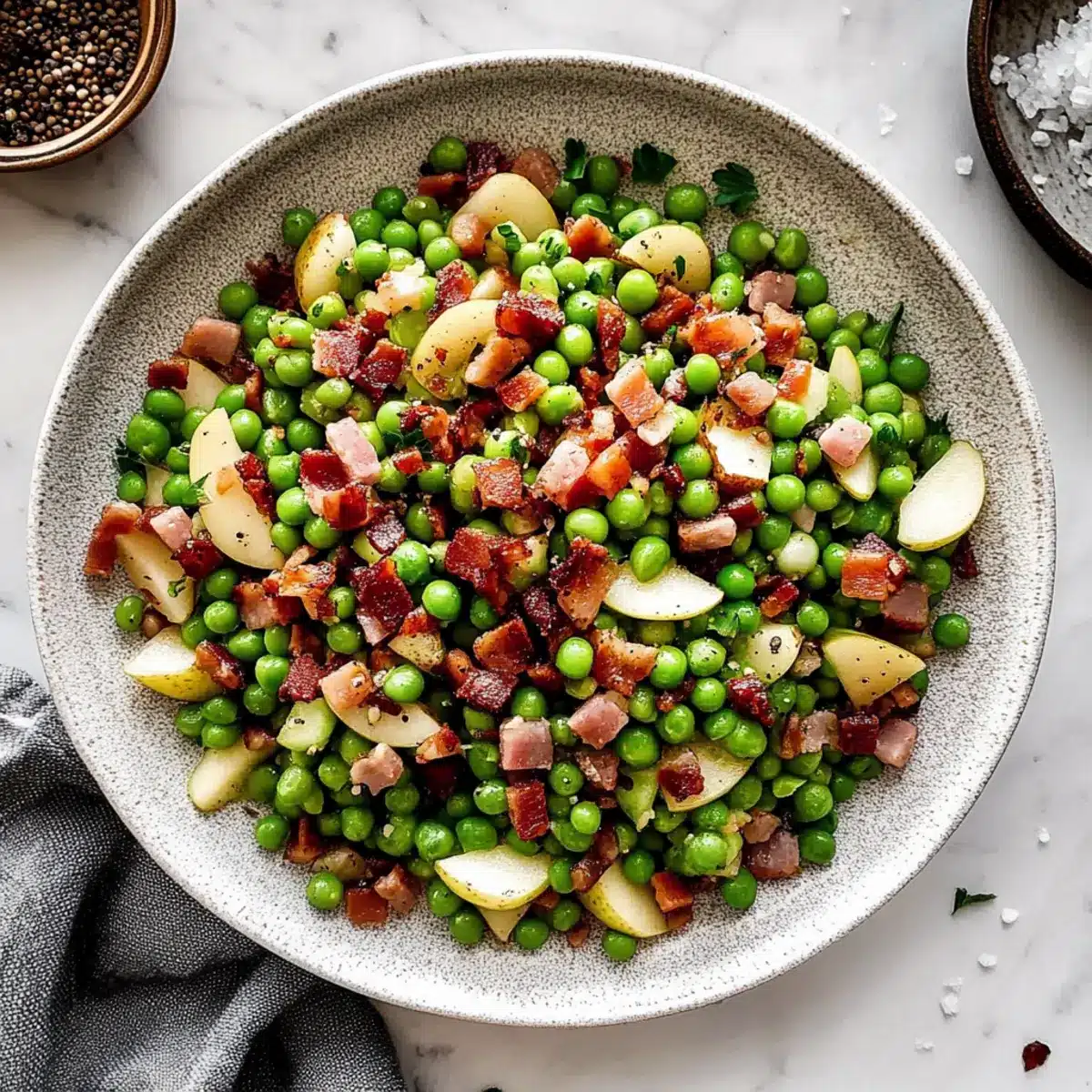 Crispy Pancetta Sautéed with Peas for a Flavorful Feast