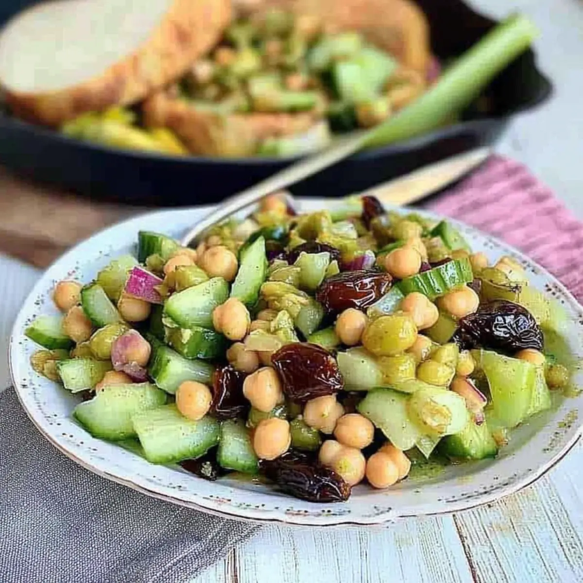 Reheating: If you’ve stored the chickpea mixture, heat it on the stove gently, then combine it with fresh, crisp vegetables before serving to maintain that refreshing crunch in your cucumber celery olive odyssey salad.