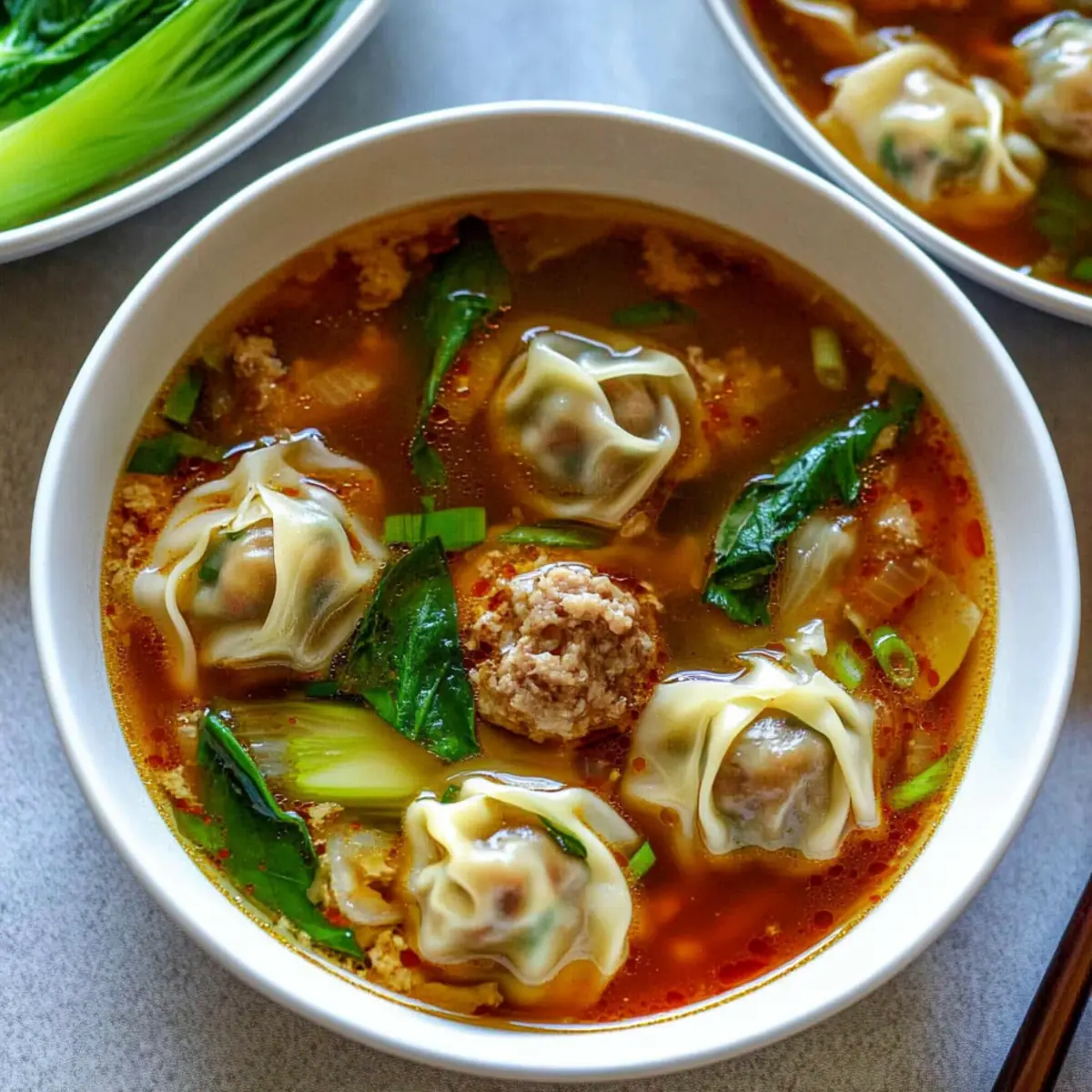 Ladle the steaming hot soup into bowls, garnishing each serving with sliced green onions and a drizzle of chili oil for a spicy kick. This final touch not only enhances the presentation but also adds an exciting burst of flavor. Your cozy Deconstructed Wonton Soup is now ready to warm your heart and delight your taste buds!