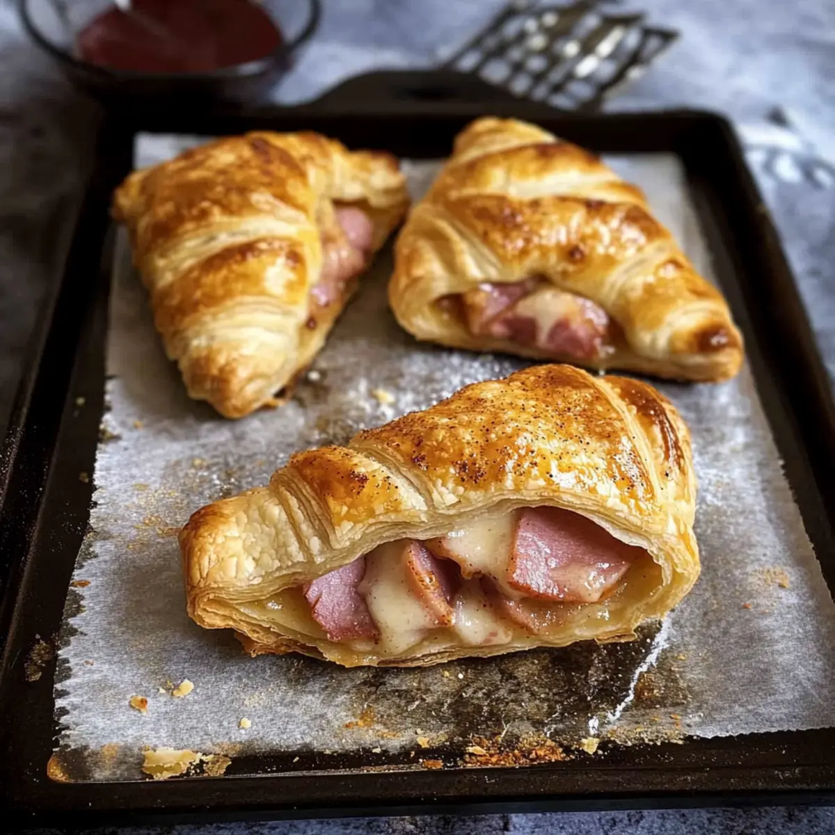 Don’t Overfill: Be cautious with the amount of ham and cheese you add. Overfilling can lead to bursting pastries in the oven. Stick to a single slice of ham and a generous handful of cheese for best results.