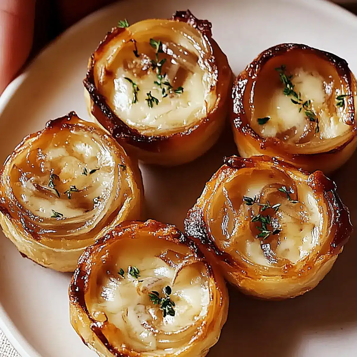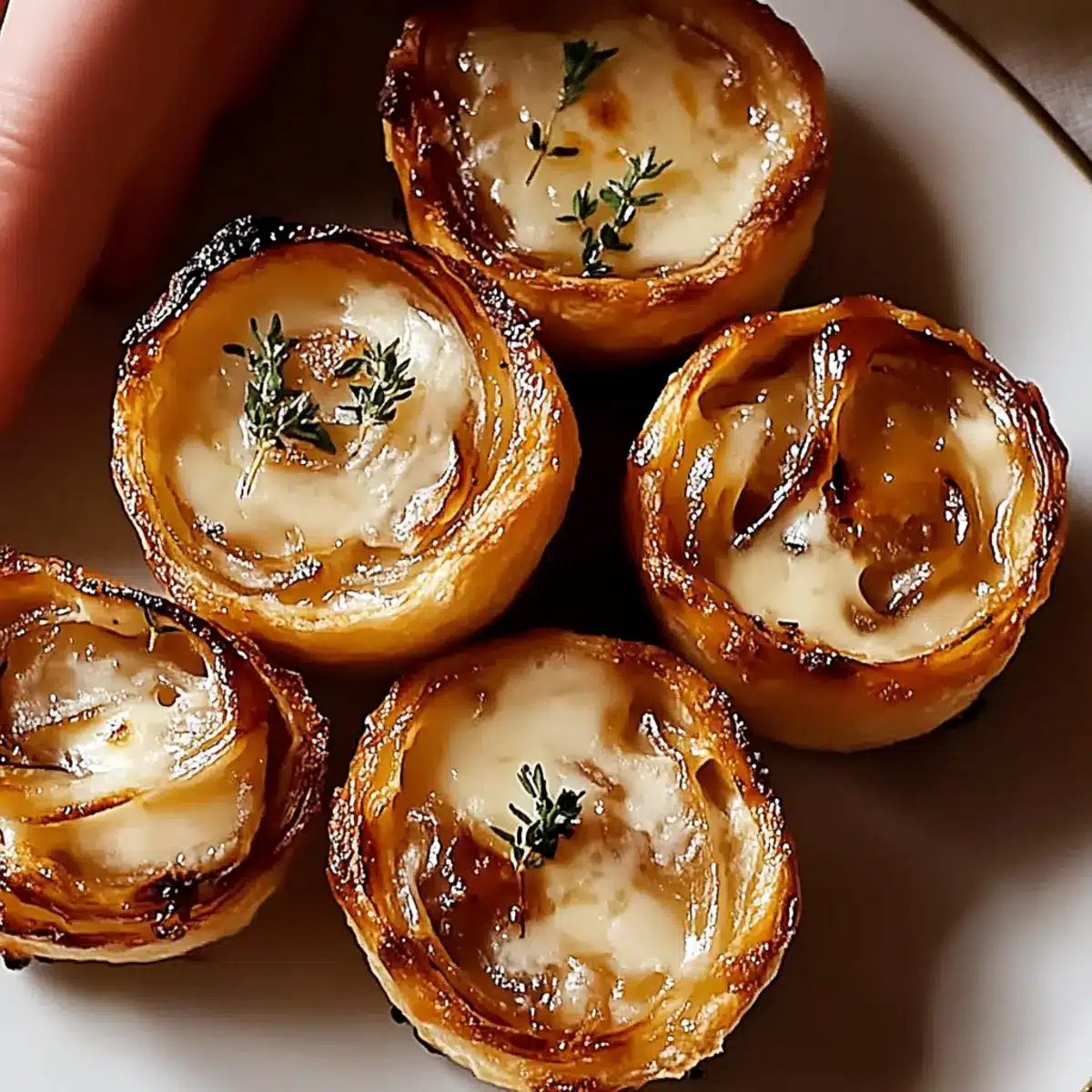 The kitchen was filled with the sweet, inviting smell of caramelizing onions as I prepared for a cozy night in. These Savory French Onion Soup Bites encapsulate that heartwarming aroma and comforting flavor, tucked into flaky crescent roll cups. They’re more than just appetizers; they’re a comforting hug on a plate, perfect for gatherings or quiet evenings at home. With the flexibility to craft vegetarian and dairy-free options, this recipe ensures everyone can join in the deliciousness—making it a true crowd-pleaser. What’s your favorite way to enjoy onion soup? Let’s dive into these delightful bites!