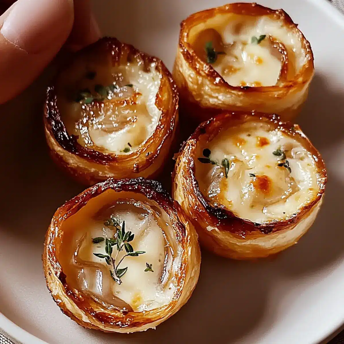 Sogginess can occur if there’s too much moisture in the filling. To avoid this, make sure to simmer your onion and broth mixture until most of the liquid evaporates before filling the dough cups. This will help maintain the perfect balance of crispy and gooey in your bites!
