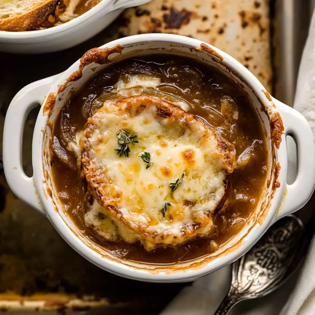 These Classic French Onion Soups are perfect for meal prep enthusiasts! You can prepare the beef stock up to 3 days in advance and store it in the refrigerator to enhance its depth of flavor. The caramelized onions can also be made and stored separately for up to 24 hours, ensuring they stay sweet and tender. When you’re ready to enjoy your soup, simply reheat the stock and onions together, toast your baguette with butter, and assemble with Gruyère cheese right before serving. This way, you’ll have a comforting, restaurant-quality meal ready in no time, while still enjoying the rich, savory flavors that make French Onion Soup so beloved!