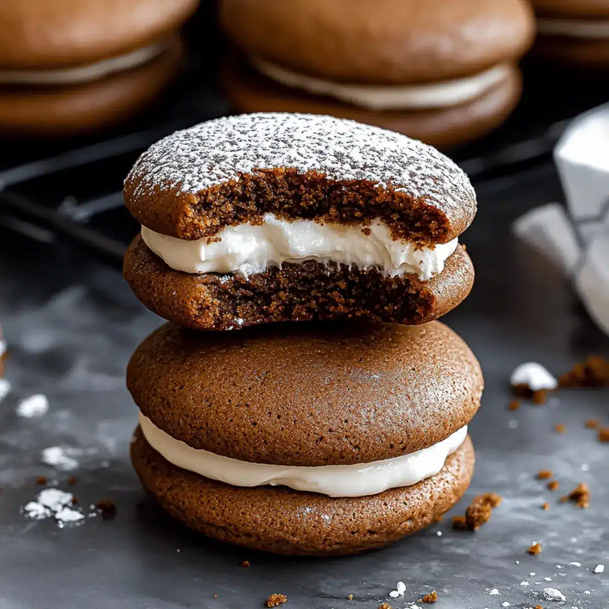 Reheating: If you prefer them warm, pop them in the microwave for about 10-15 seconds. This will bring back that soft, chewy texture, making your Gingerbread Whoopie Pies delightful again!