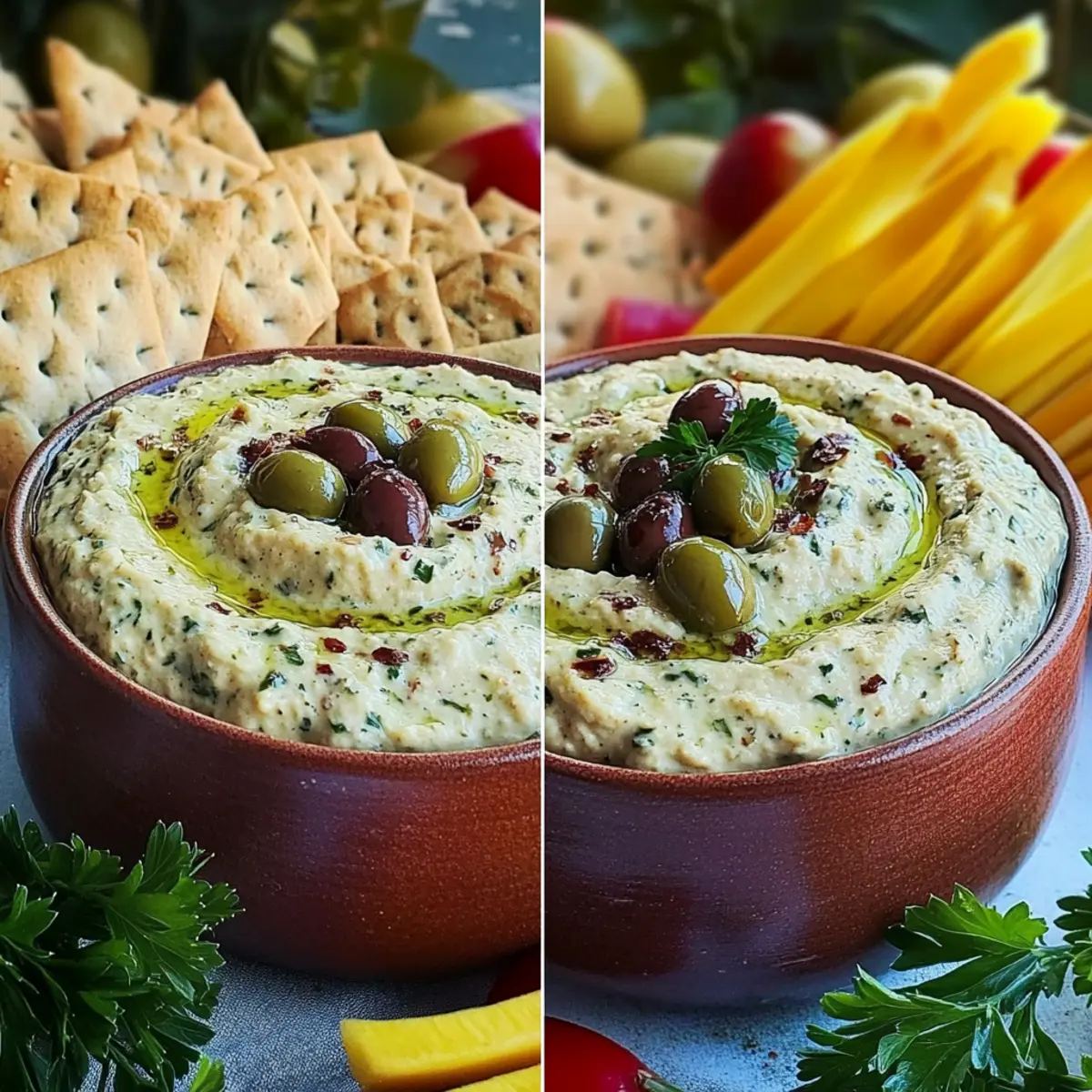 Mini Meatballs: Serve tender meatballs alongside the dip for a heartier option. Their savory flavor makes for a delightful contrast to the tangy olive dip.