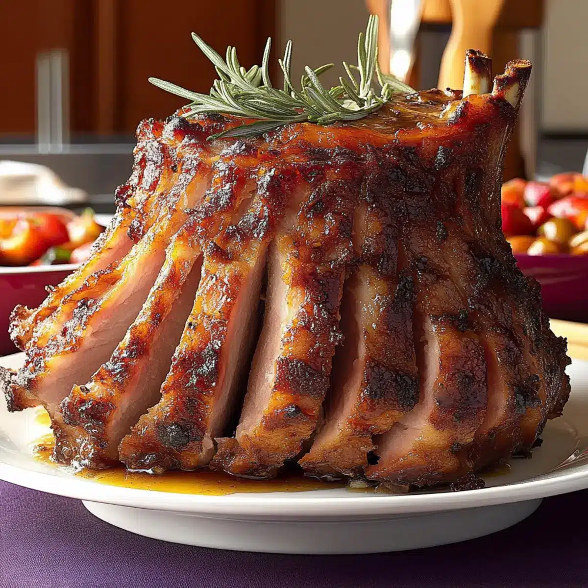 When serving the holiday crown pork roast, be mindful of guests with dietary restrictions. Since the dish contains pork and potential allergens from the glaze, such as mustard, it’s a good idea to provide some alternative sides—like roasted vegetables and salads—to cater to everyone’s needs. If you’re hosting vegetarians, consider preparing a delicious meat alternative, such as a stuffed butternut squash, as a main dish.