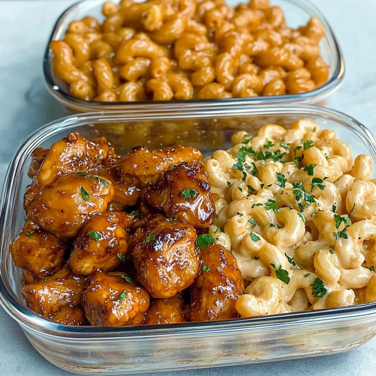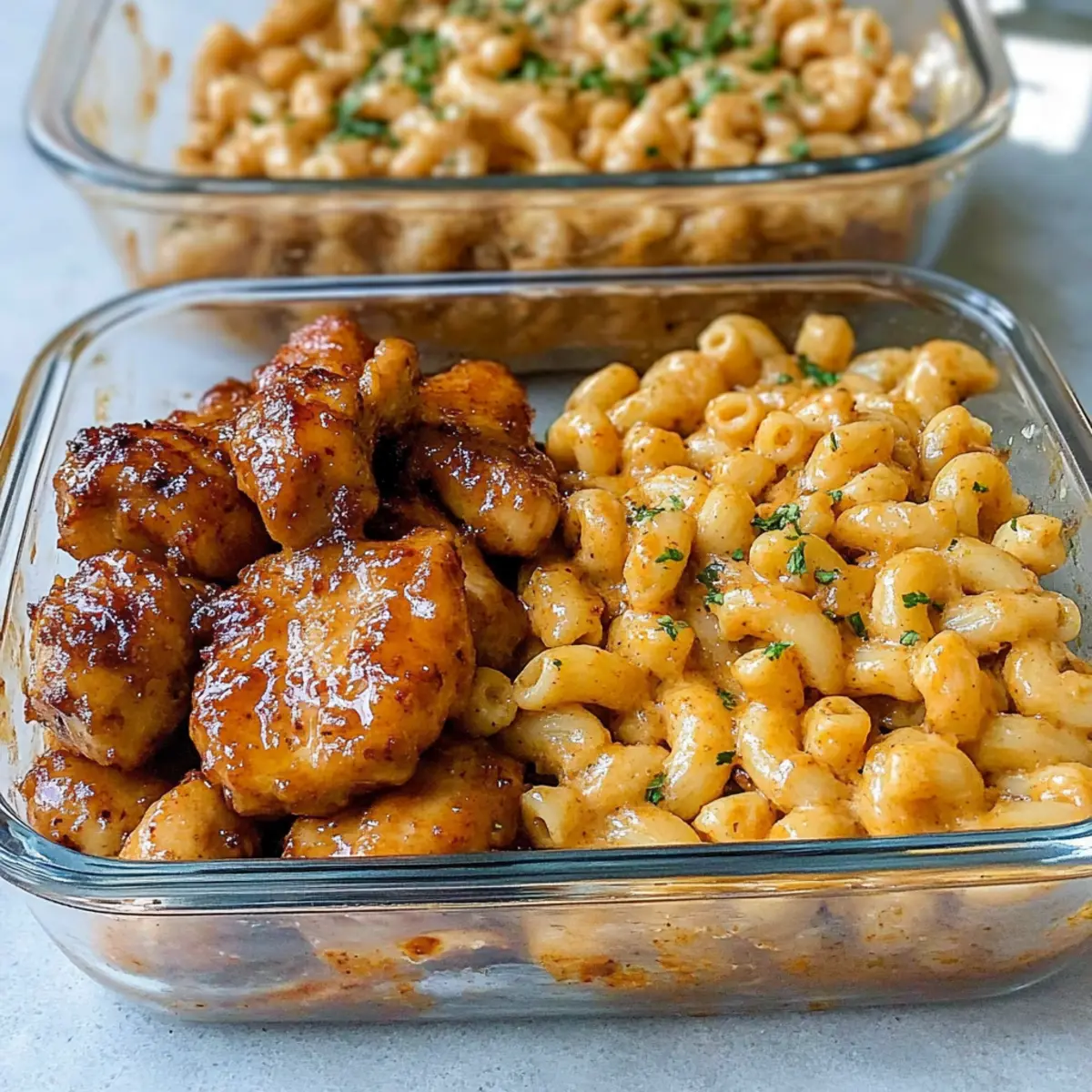 You can store your Honey Garlic Butter Chicken and Mac & Cheese in airtight containers in the fridge for up to 4 days. Make sure to cool the dish completely before sealing it to keep everything fresh and delicious!
