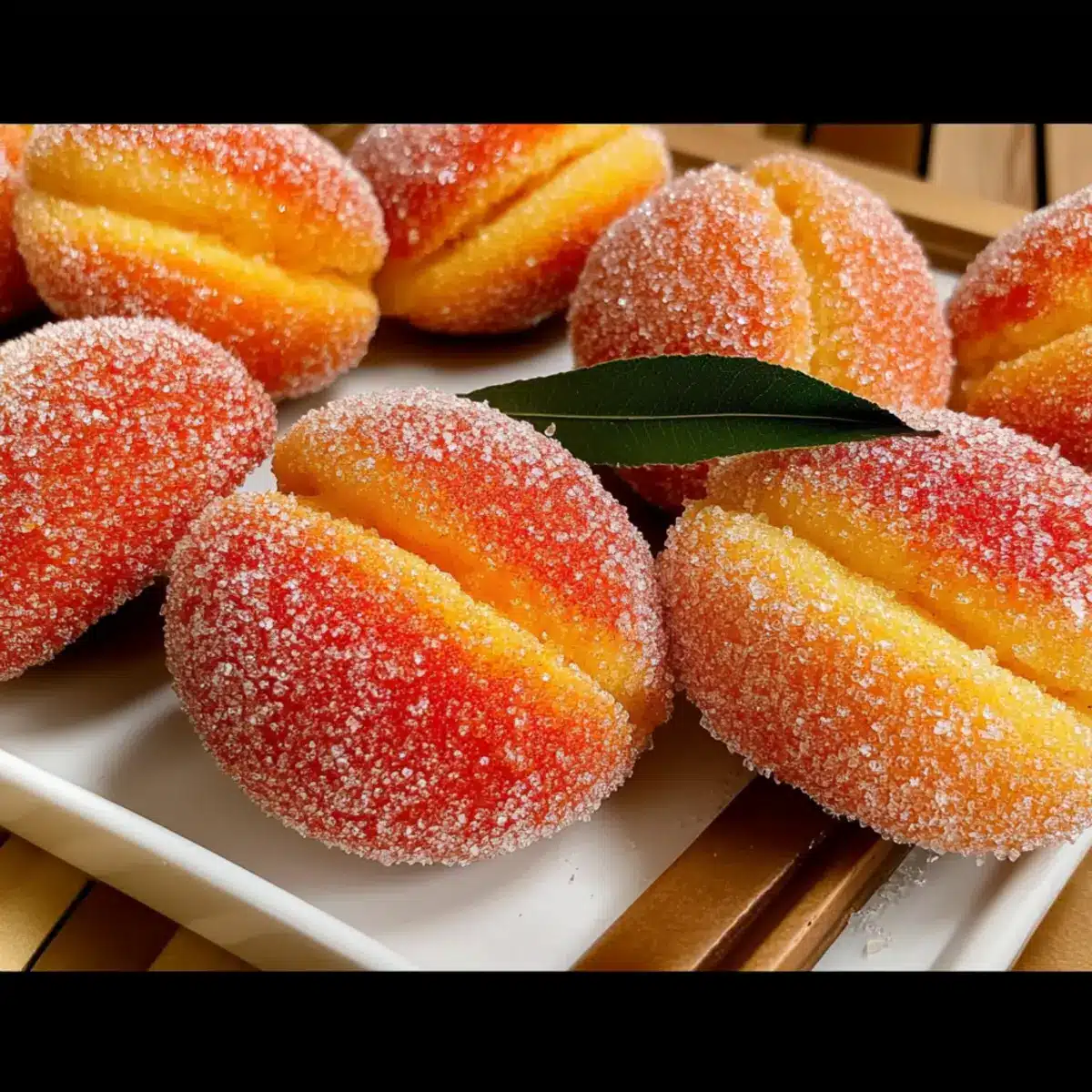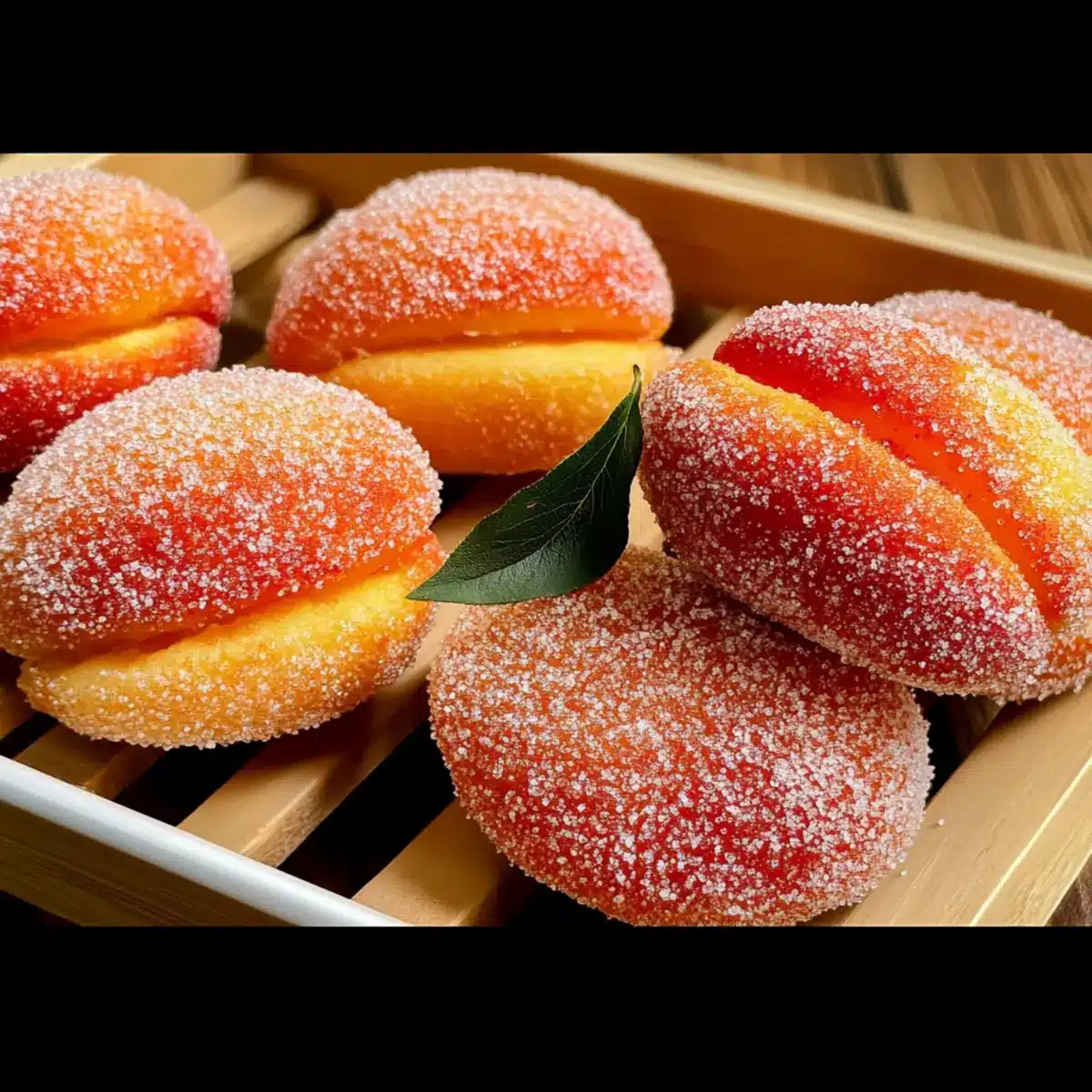 After baking, allow the cookies to cool on the baking sheet for a few minutes before transferring them to a wire rack. Once completely cooled, roll each cookie in granulated sugar. For added fun, you can tint the sugar with a few drops of yellow food coloring before coating to enhance their peachy appearance.