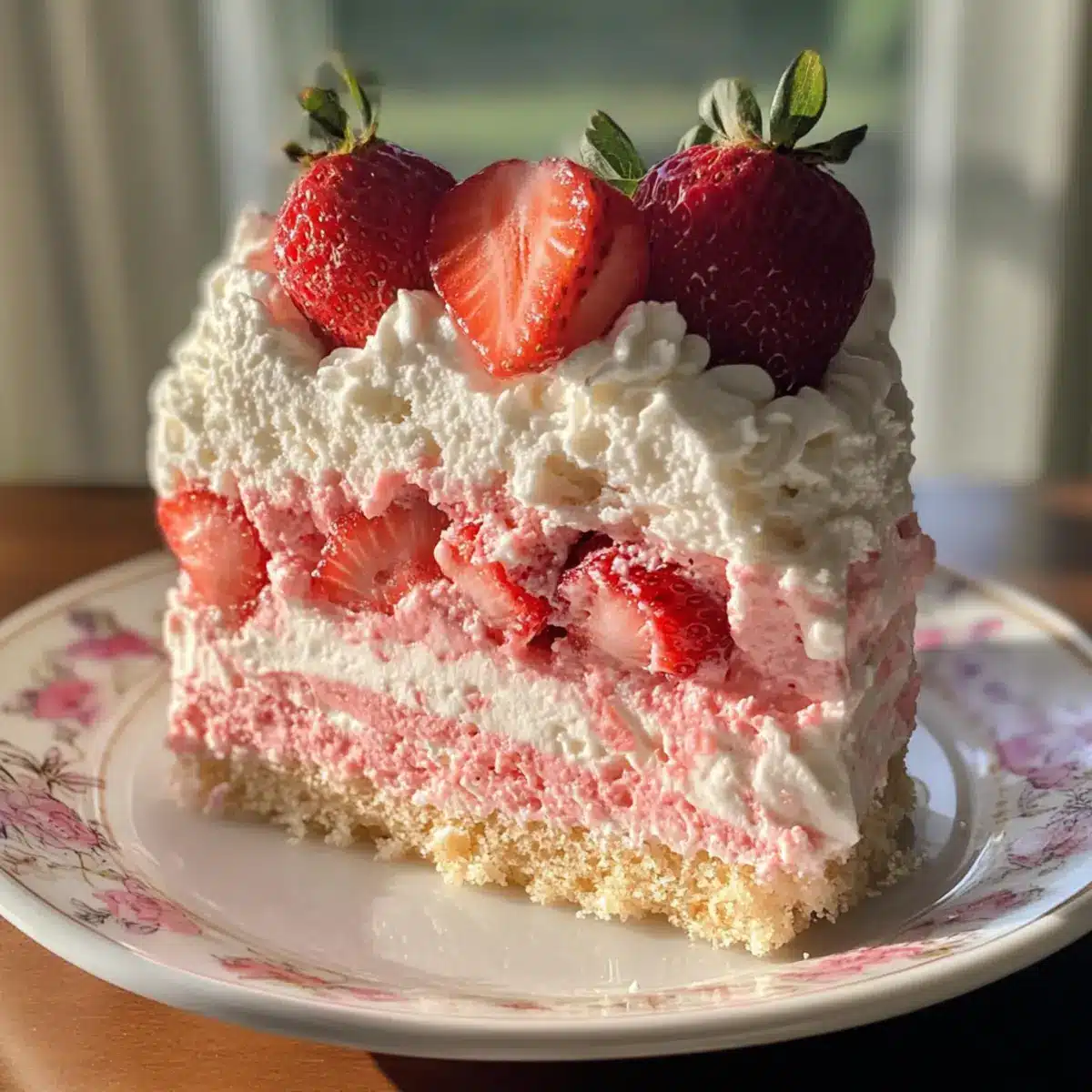 No Bake Strawberry Cloud Cake That Melts in Your Mouth