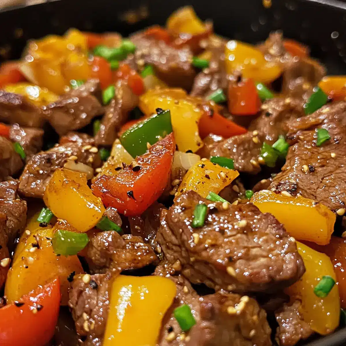 - Return the cooked steak to the skillet, tossing gently with the sautéed vegetables and thickened sauce. Cook for another minute to heat everything through.