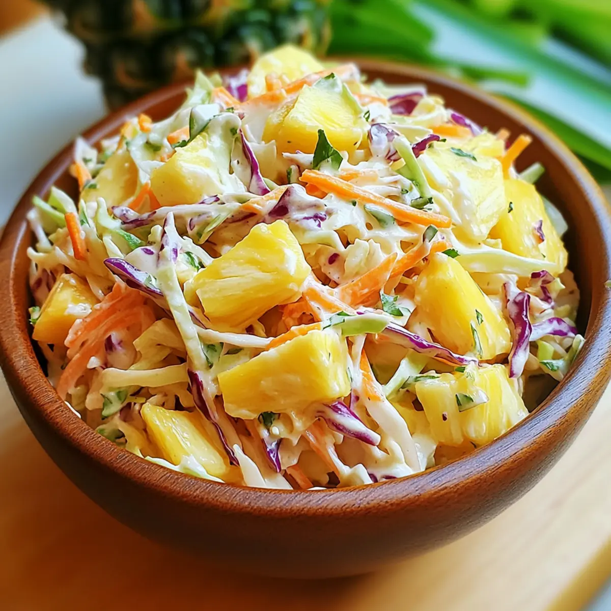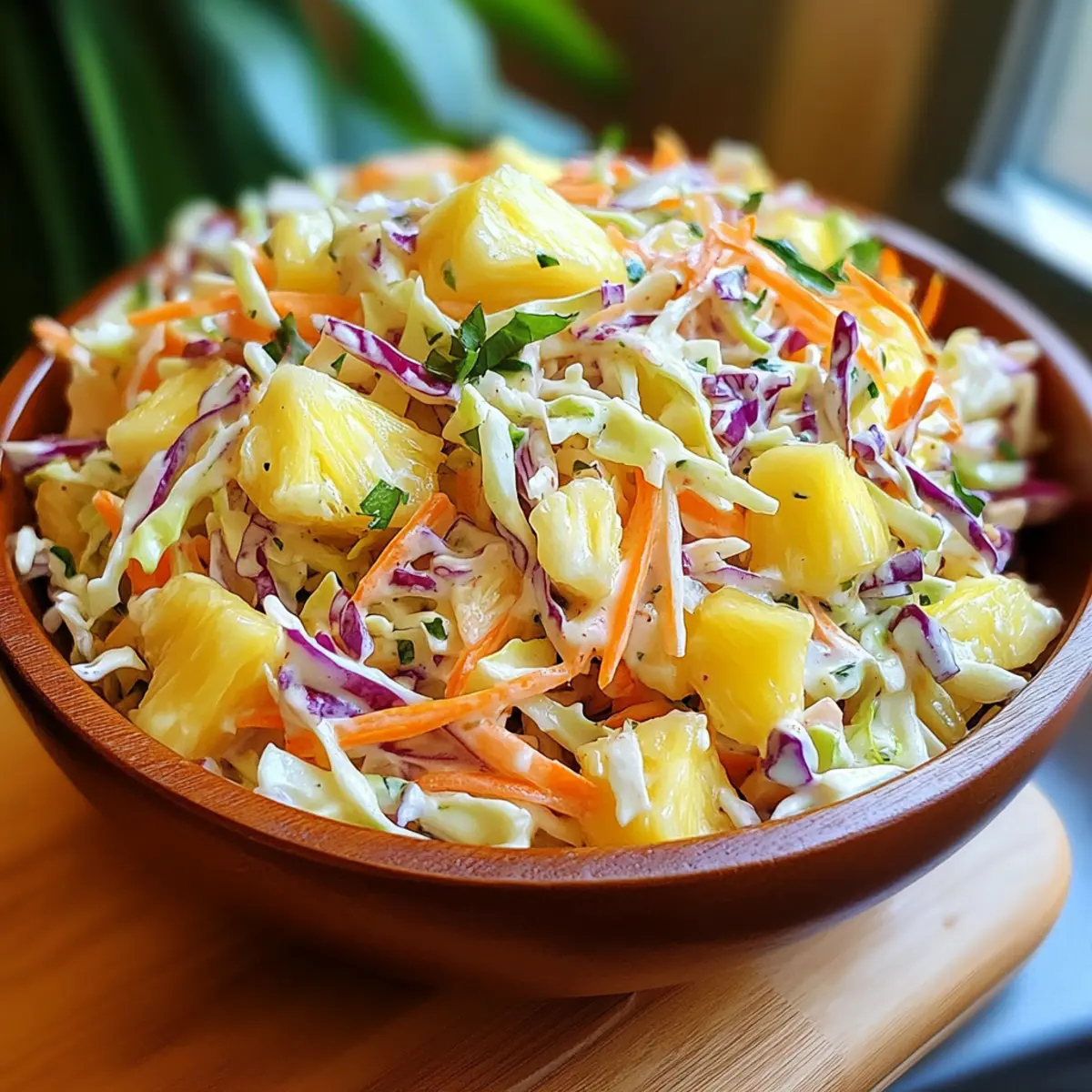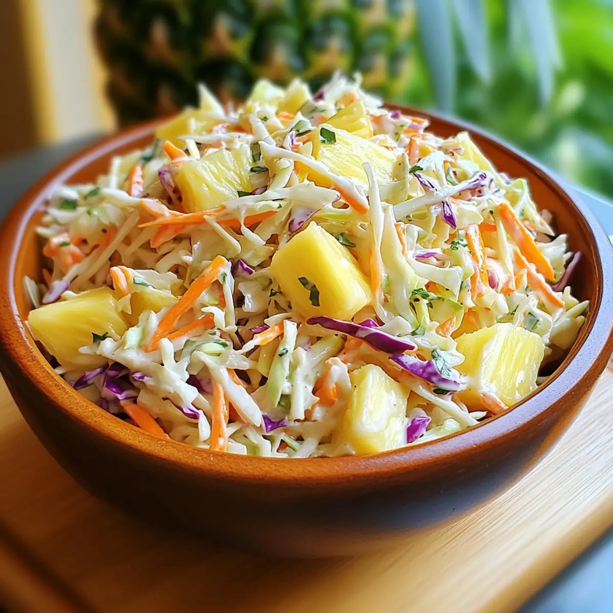 Test Variations: Experiment with added ingredients like almonds or sunflower seeds for extra crunch, or herbs like cilantro for a fresh touch that brightens your Pineapple Slaw.