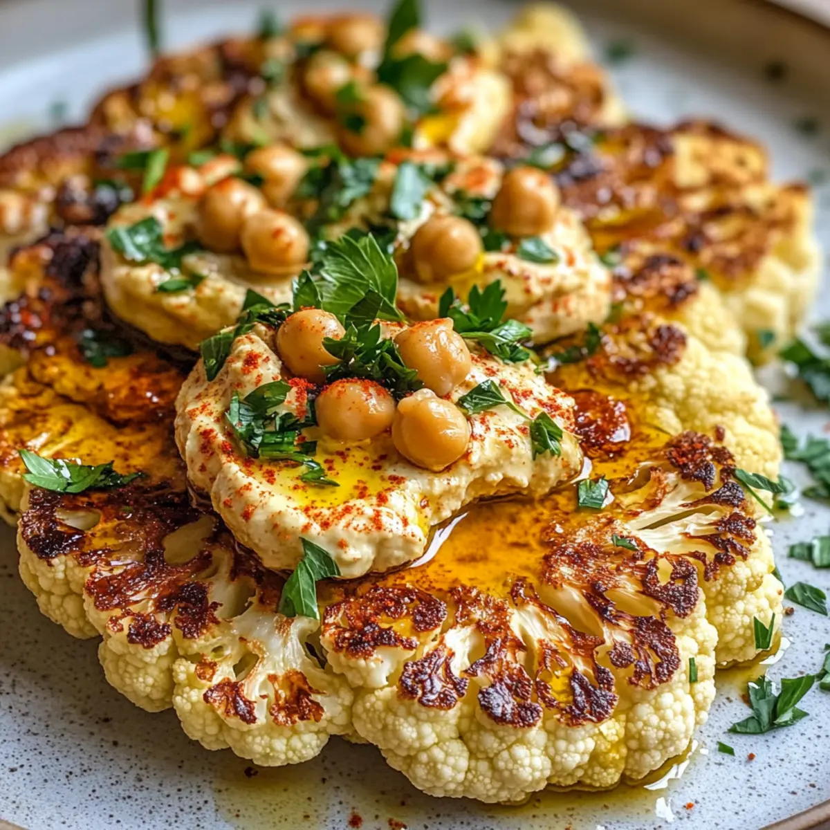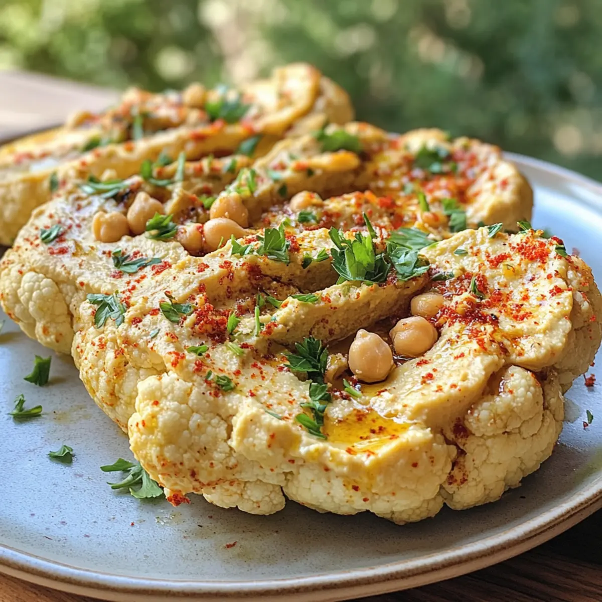 Savory Roasted Cauliflower Steaks with Creamy Hummus Bliss