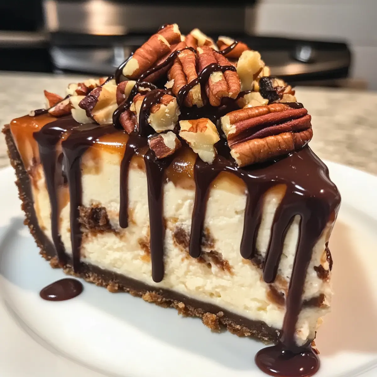 Absolutely! This salted caramel turtle cheesecake can be adapted for various dietary needs. For a gluten-free option, simply use gluten-free graham crackers or nuts for the crust. If you’re looking for a dairy-free version, vegan cream cheese can replace regular cream cheese, and you can use coconut cream instead of sour cream for a similar creamy texture. Always check for allergies when serving!