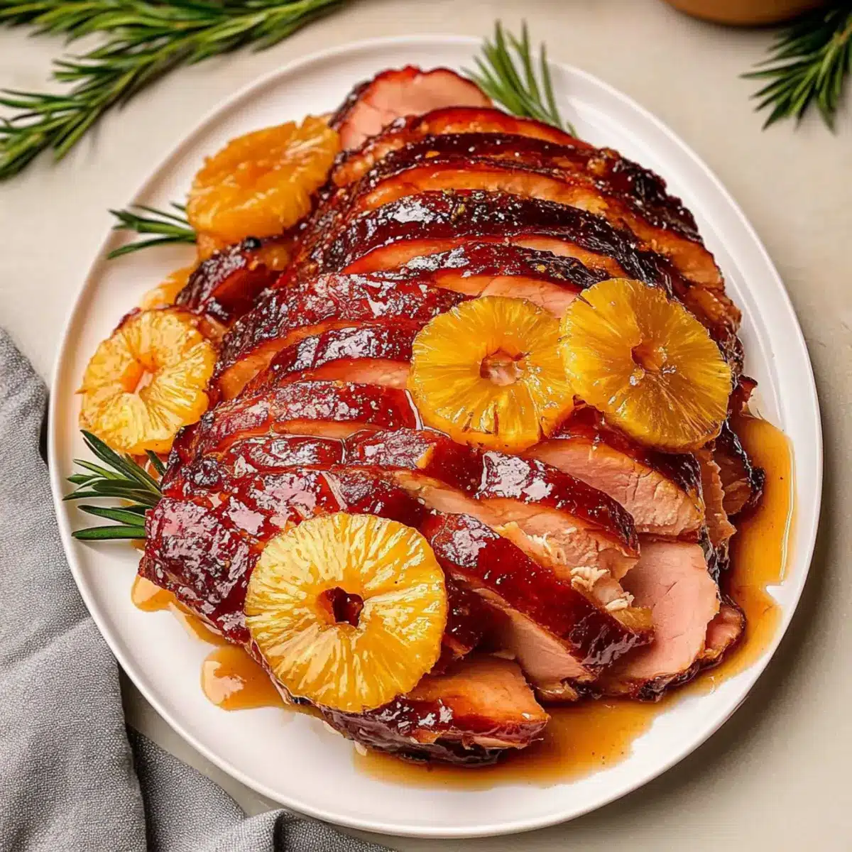 - Herby Infusion: Add fresh herbs like rosemary or thyme to the glaze for an aromatic twist that enhances the ham’s savoriness.
