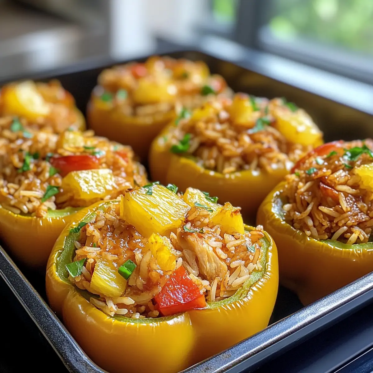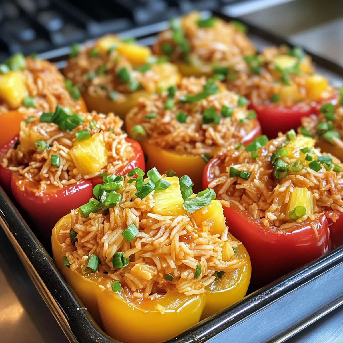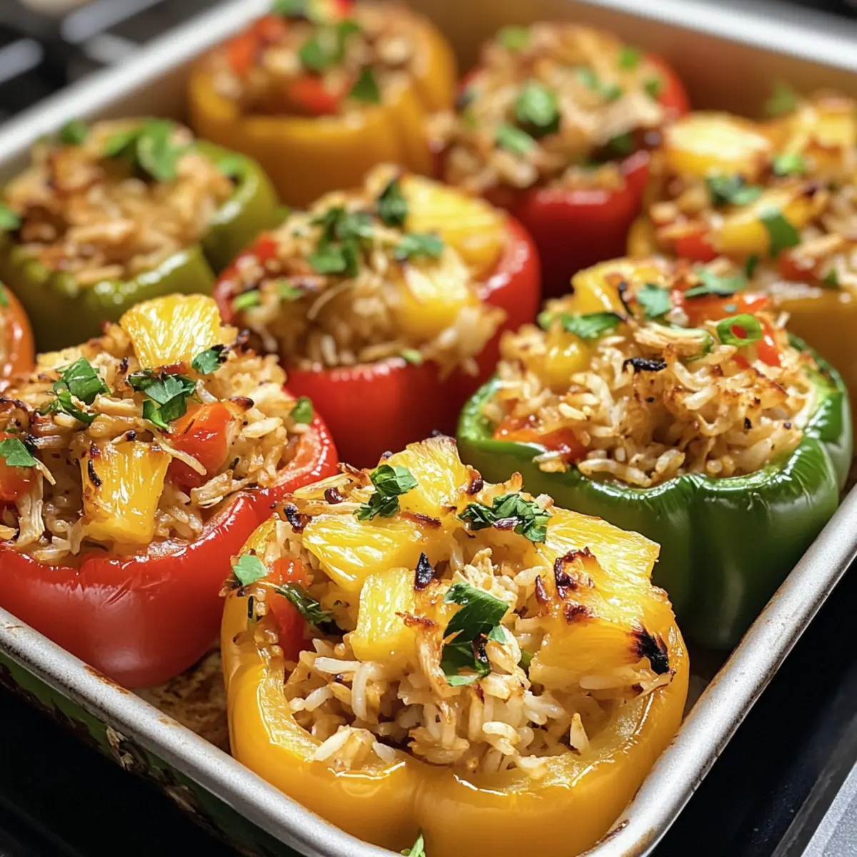 Once baked, let the stuffed peppers cool slightly for about 5 minutes before serving. This brief cool-down period allows the flavors to settle. Garnish with extra pineapple bits or finely chopped green onions for a pop of color and freshness, inviting everyone to dig in!