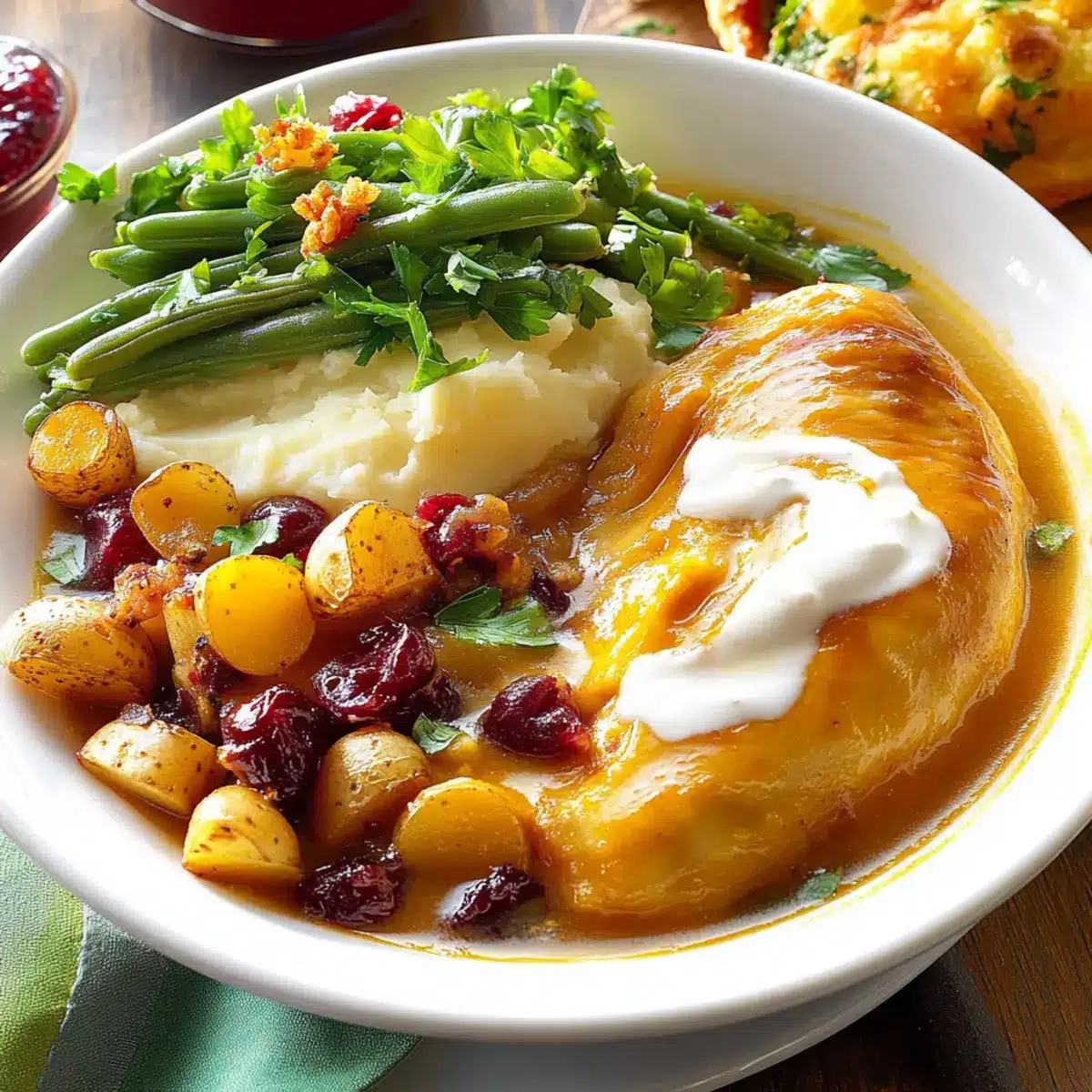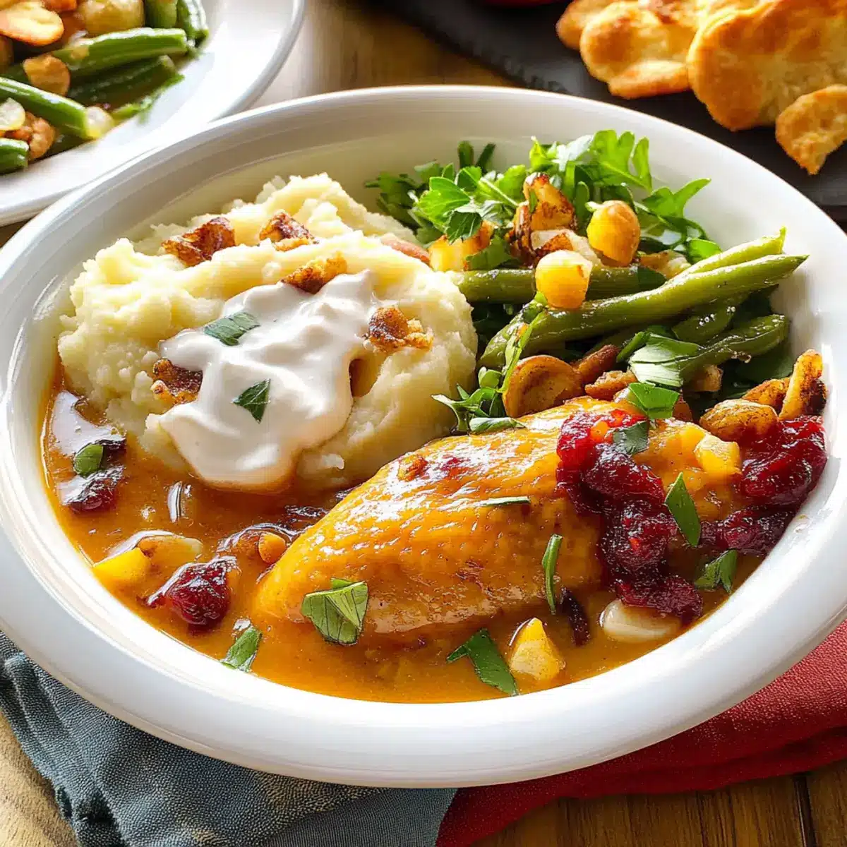 Creamy Mashed Potatoes: The buttery richness of mashed potatoes provides a comforting, smooth contrast to savory turkey and tangy cranberry sauce.